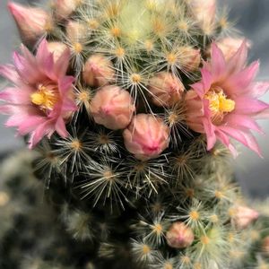 こんばんは〜 🌵マミラリア属 朝霧 サボテン科🌵 可愛いお花が咲いてきました!💮✨🎶😄