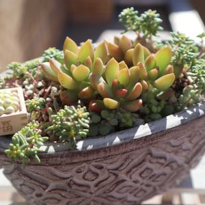 ブロンズ色の葉色が特徴的な多肉植物。
