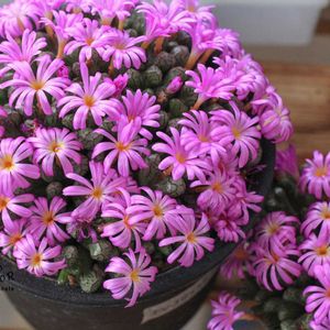 今年は可愛い花が たくさん見れました♡ ①C. 紅マウガニー✕C.maughanii CR1131 (1個から3個に💕この色合い好き) ②緑のマウガニー ③マーベルスミルクマン ④リトープス オパリナ (オパリナの花、大きい😆) ⑤風鈴玉