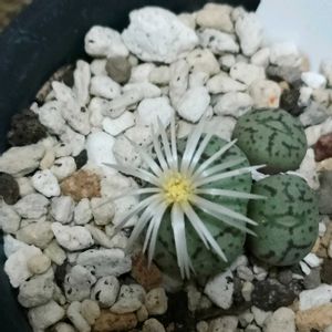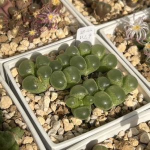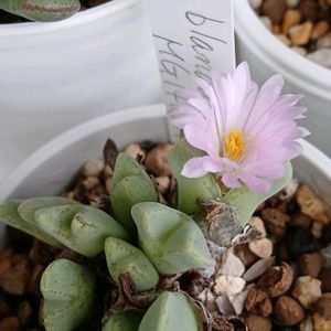 コノフィツム・ブルゲリ。去年は実生で失敗したので今年は幼苗で再チャレンジ。メセン系は苦手なので溶けずに育てられるか微妙ですが・・・。