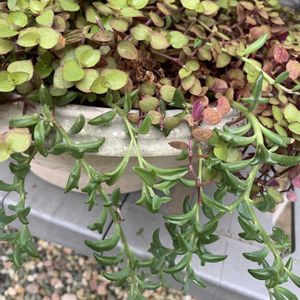 セネシオ「ドルフィンネックレス」「アーモンドネックレス(京童子)」 どちらも凄い勢いです ドルフィンネックレスのプランターには、とりあえず置いといた葉挿しが😅 アーモンドネックレスのプランターには、とりあえず挿しといたレモネードが😅 ズボラにも程がある💧