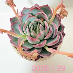 葉がロゼット状につく春秋生育型の多肉植物です。株の状態がよければ花を咲かせることがあります。葉に白い