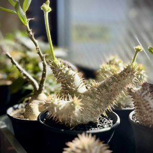 パキポディウム属 デンシフローラム✨️✨️ 外は強風🌀 窓際ぬくぬく(っ ॑꒳ ॑c) 可愛い〜😍 🏷かずのデンシフローラム