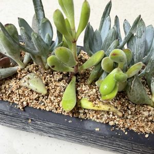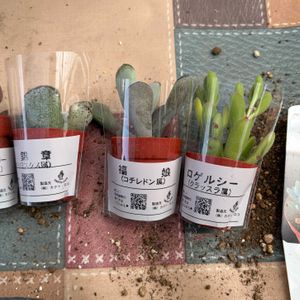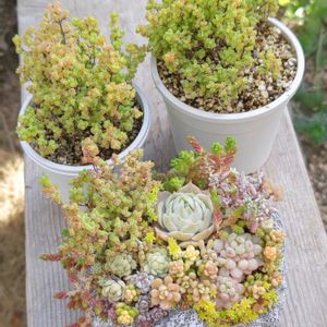 多肉植物寄せ植えワークショップ。 初めての多肉植物ばかり選んでみた🌱 万宝(セネシオ属) ワテルメイエリー(クラッスラ属) ロゲルシー(クラッスラ属) 福娘(コチレドン属) 天錦章(アドロミスケス属)