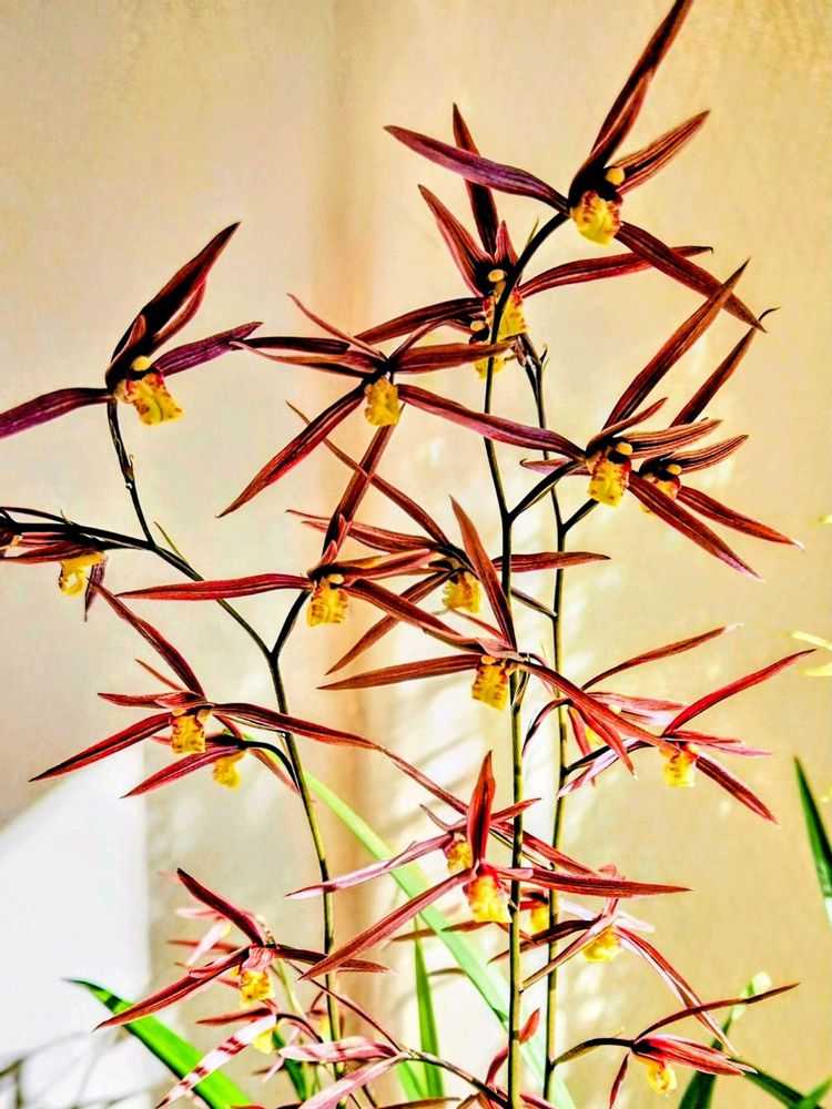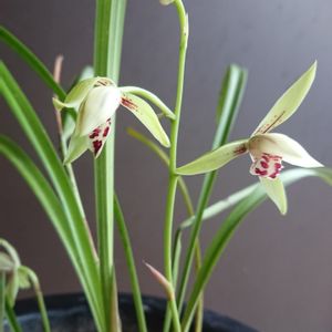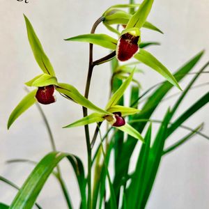 『熱意』『勝利』。「熱意」は、寒い時期に花を咲かせ、とてもよい香りを漂わせることにちなむといわれています。日本の本州以南の暖かい地域に自生する東洋蘭の一種で、以前は自生している姿を見ることができましたが、現在はほとんど目にすることができず、環境省のレッドリストでも絶滅危惧種に指定されています。