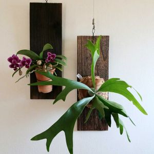 『信頼』『助け合う』『魔法』。「信頼」「助け合う」は、岩や樹木に張り付くように根を伸ばす着生植物であることに由来するといわれています。板付けで壁に掛けたりハンギングしたり、さまざまな飾り方で楽しむことができます。