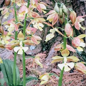 『謙虚』『誠実』『謙虚な恋』。他のランに比べて落ち着いた花色で、控えめな印象を与えることにちなむといわれています。野生種は、環境省のレッドリストで準絶滅危惧(NT)に指定されていますが、交雑しやすい性質を生かして、現在ではたくさんの園芸品種が作られています。