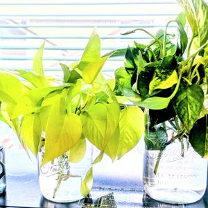 『永遠の富』『華やかな明るさ』。「永遠の富」は、学名エピプレムヌム・アウレウム(Epipremnum aureum)の「aureum」が黄金色を意味することにちなむといわれています。「華やかな明るさ」は、生命力が強く、緑を絶やさない性質に由来するといわれています。