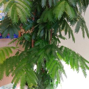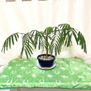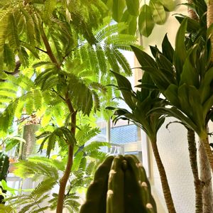 『歓喜』『胸のときめき』。「歓喜」は、いつも不機嫌な父親が、エバーフレッシュの花が入ったお酒を飲んだところ機嫌が良くなり、家族が喜んだ、という中国の古い言い伝えに由来するといわれています。昼は葉を広げ、夜になると閉じるといった変化を楽しむことができる観葉植物です。