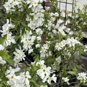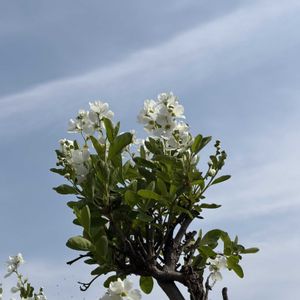 『控えめな美しさ』『気品』。清楚で美しい白い花姿に由来するといわれています。派手すぎない花と趣のある枝ぶりが好まれ、茶花にもよく利用されます。