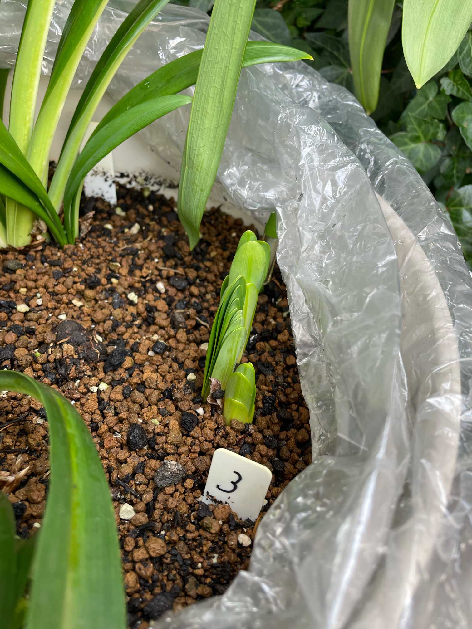 リコリス オーレアちゃん、花が終わったから、いよいよ 葉っぱ🌿出てくるかな?