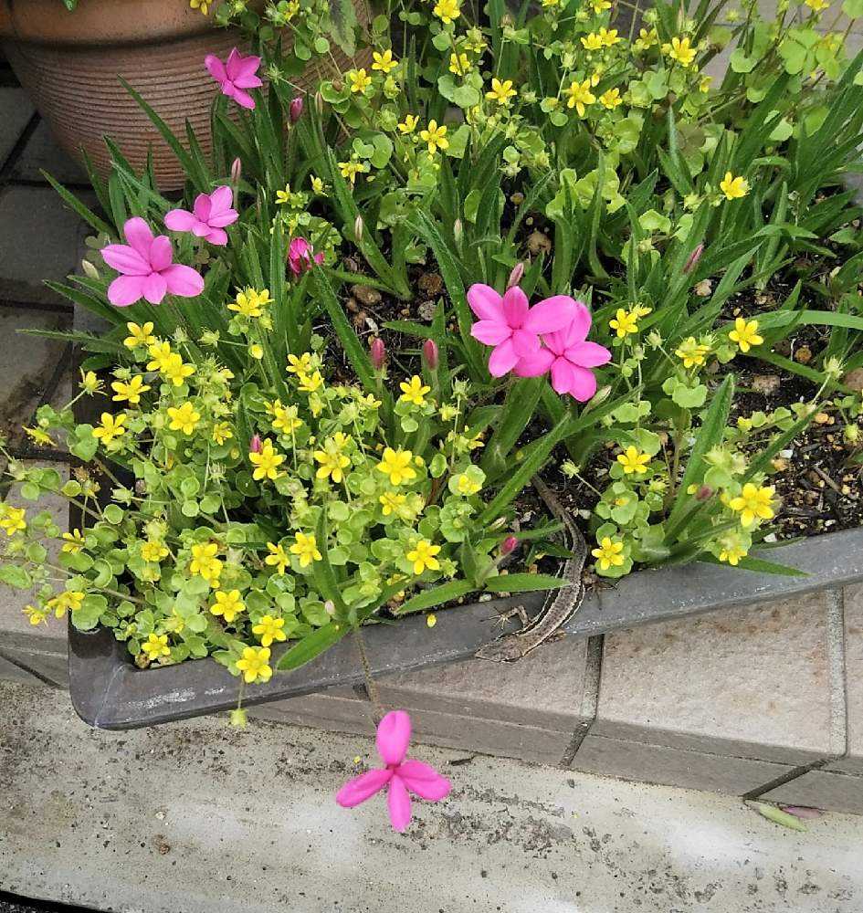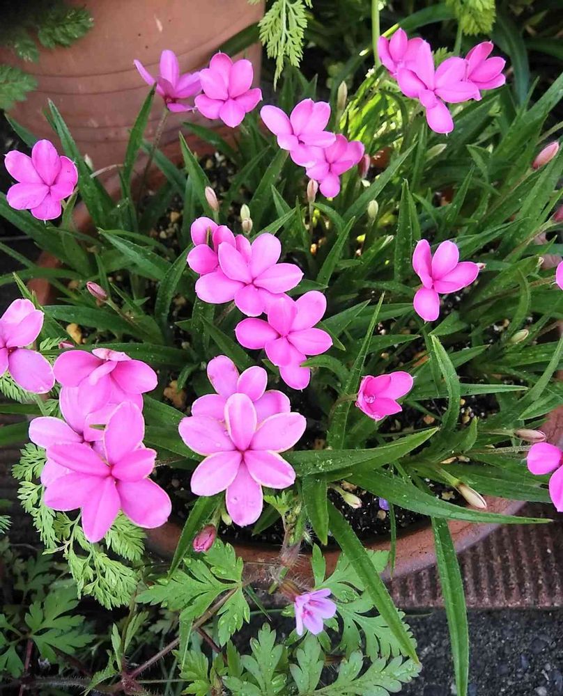 4月にピンクの花を咲かせるアッツザクラ。そろそろ、植え替えかな。