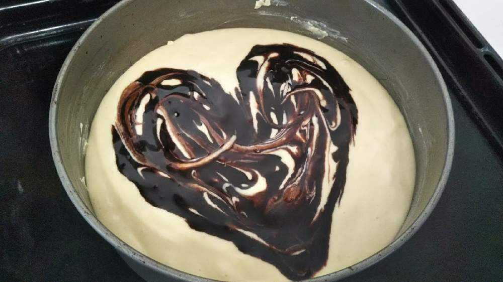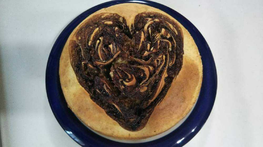 その上にチョコシロップで ハートを描くようにしました。