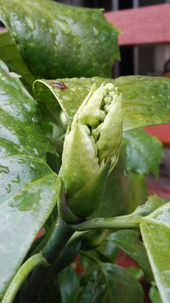 左手 ⬅雌株ボルドーの花、手裏剣の中メシベが1本