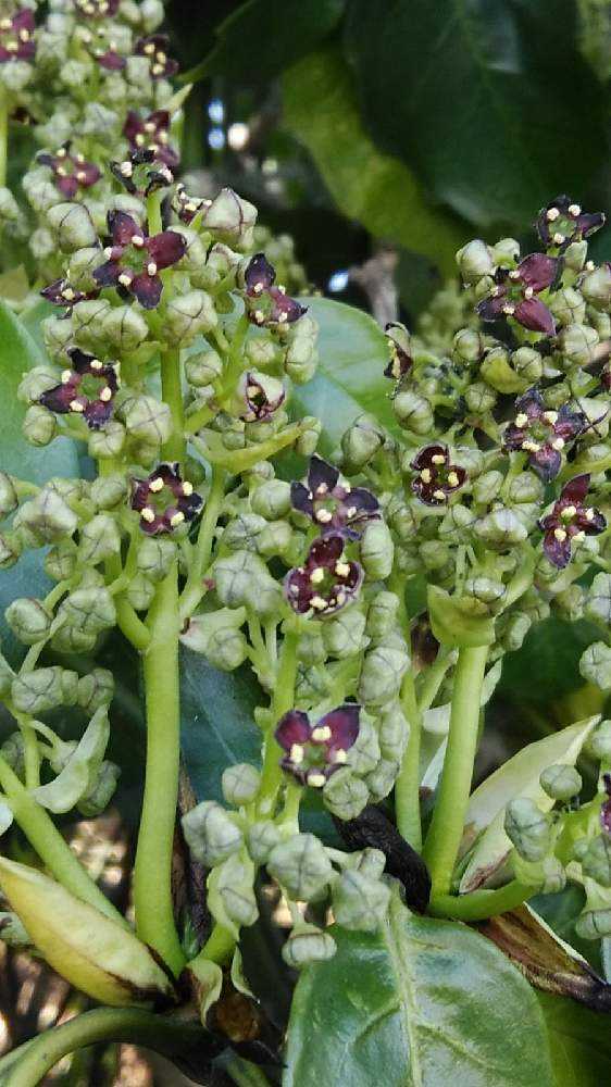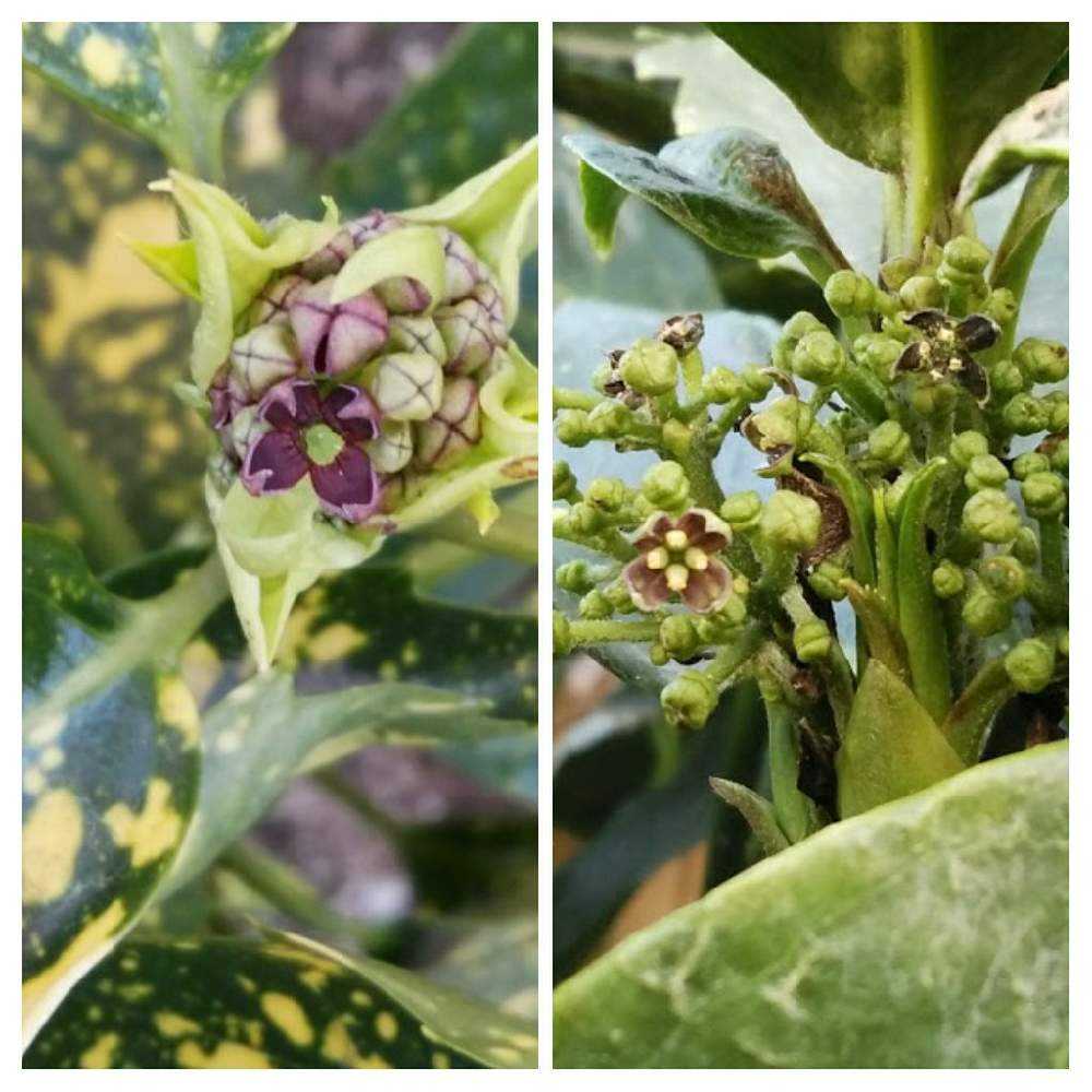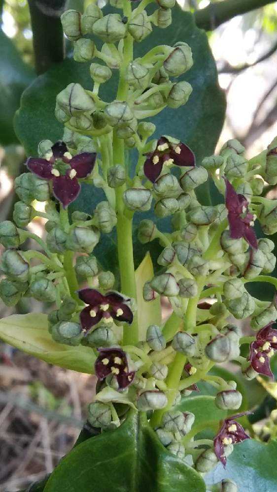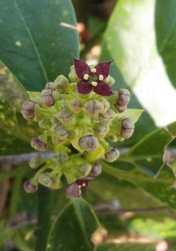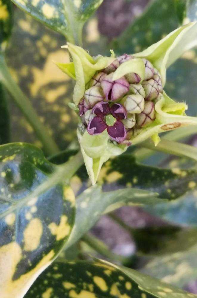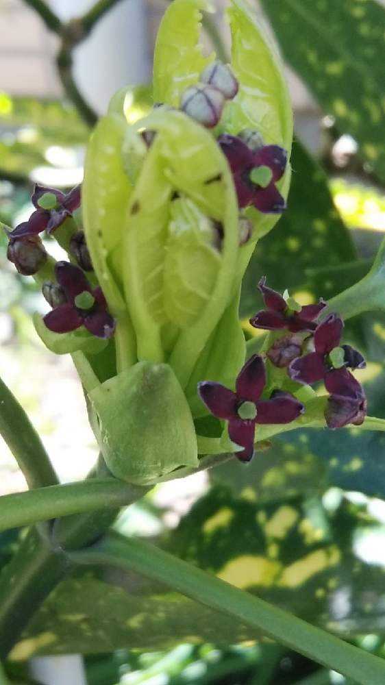 右手 ➡雄株ボルドーの花、手裏剣の中、オシべは4本