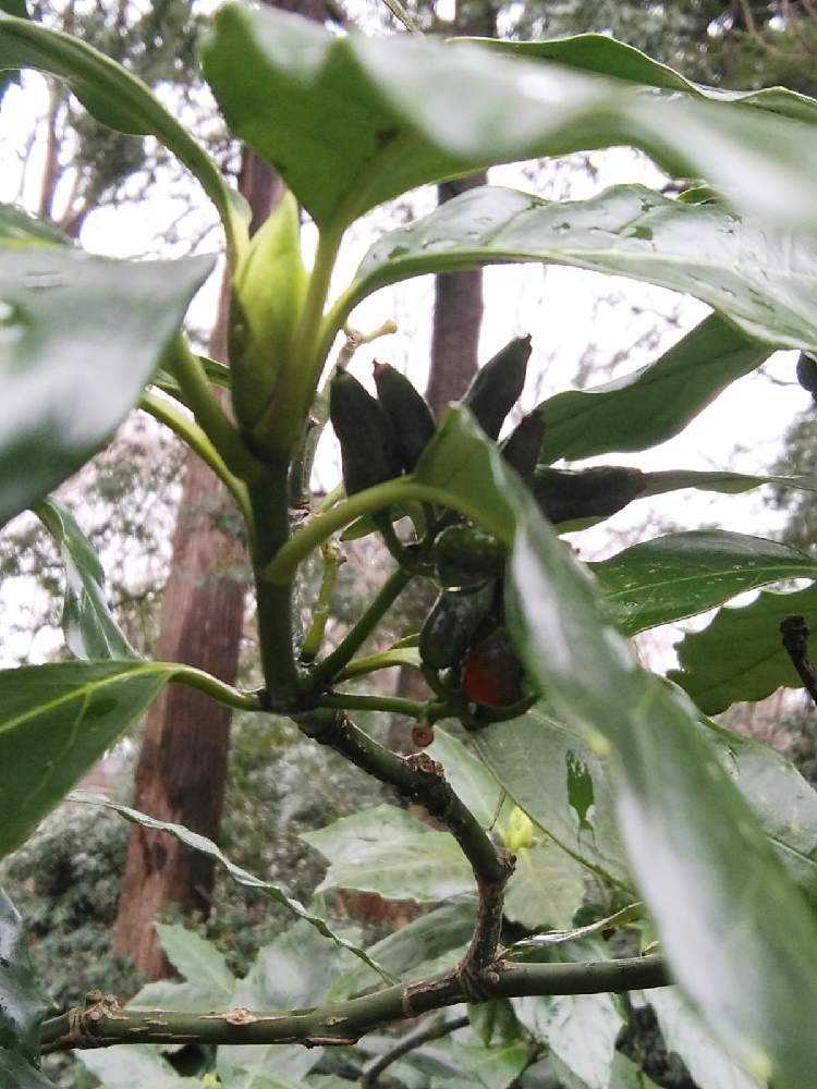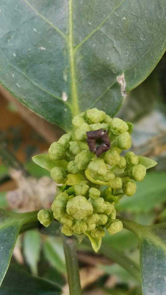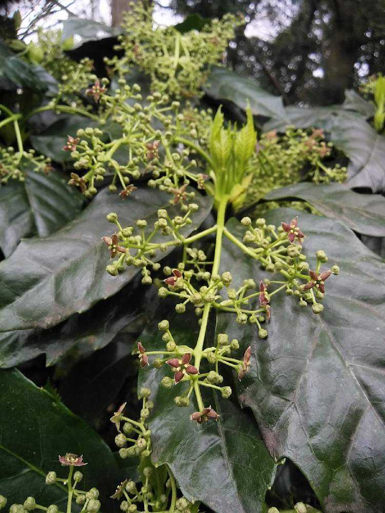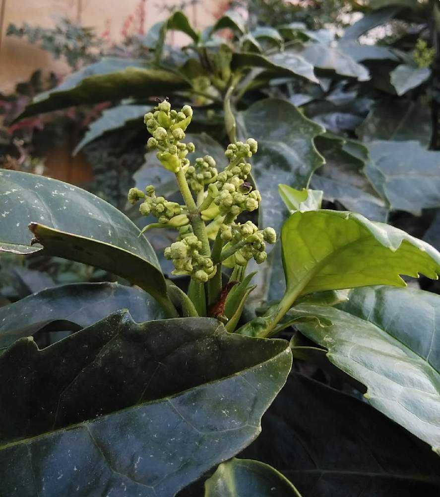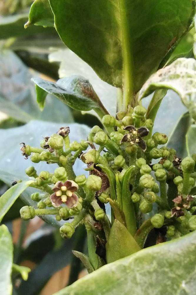 右手 ➡雄株ボルドーの花、手裏剣の中、オシべは4本