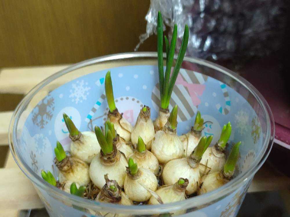 小さくてまだ花は咲かないかなぁ・・な球根をぎゅうぎゅう水耕栽培💧
