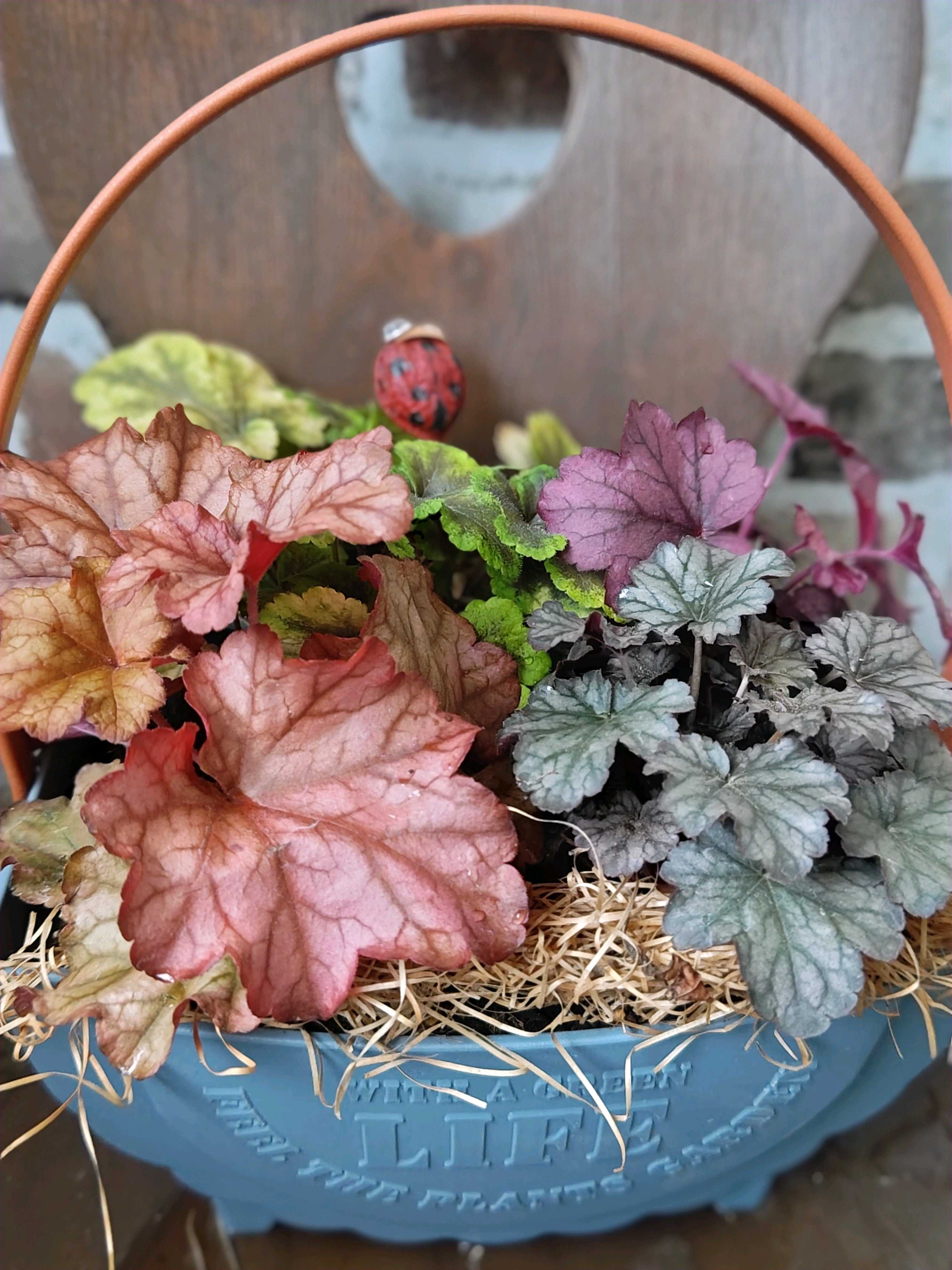 今年こそは、ヒューケラだけのハンギングバスケット作るぞ💪