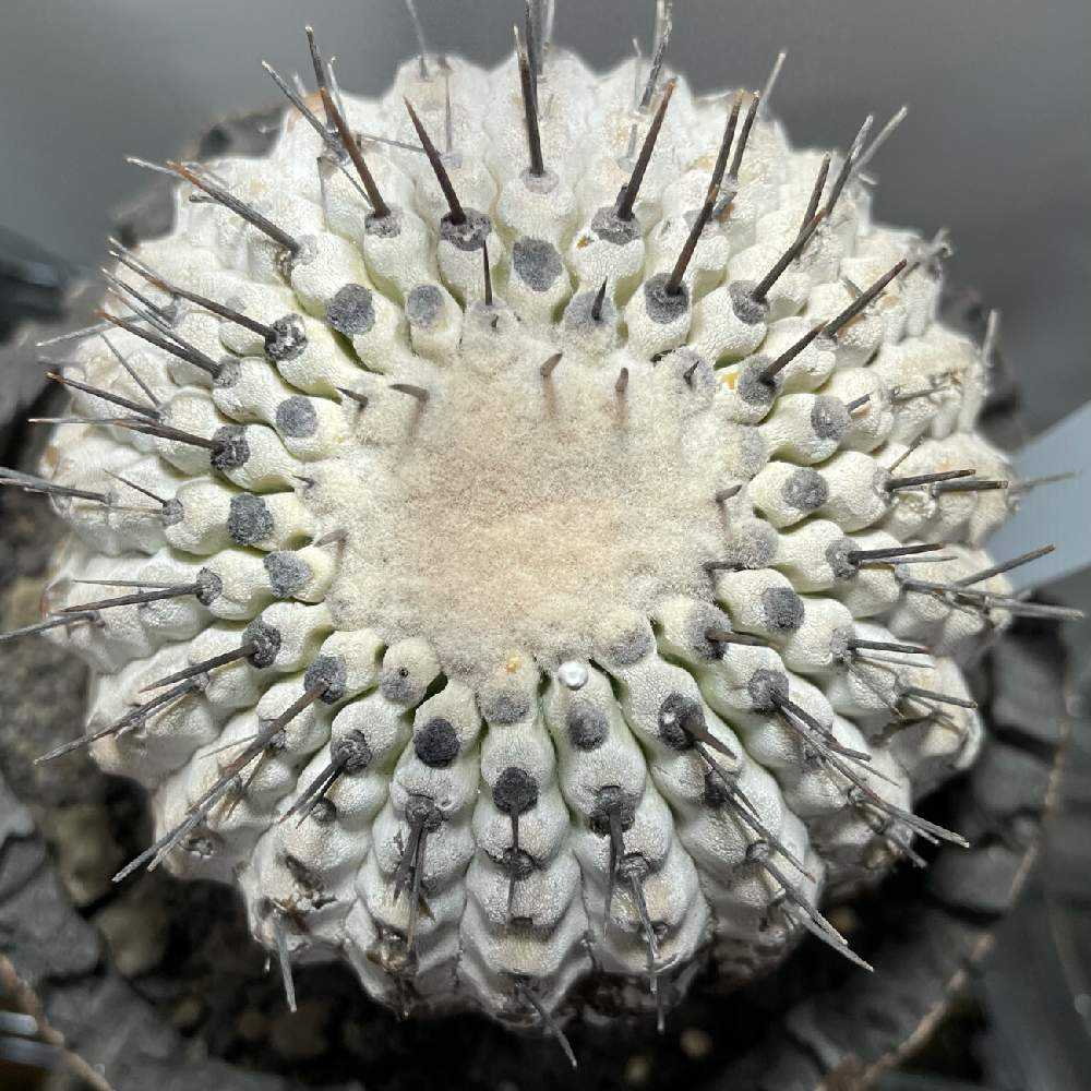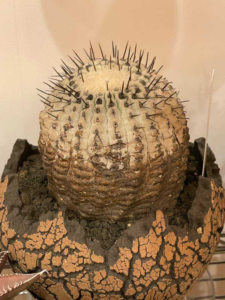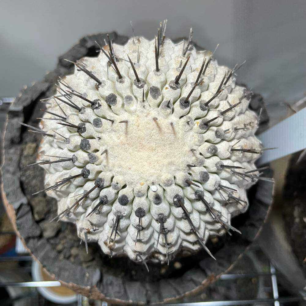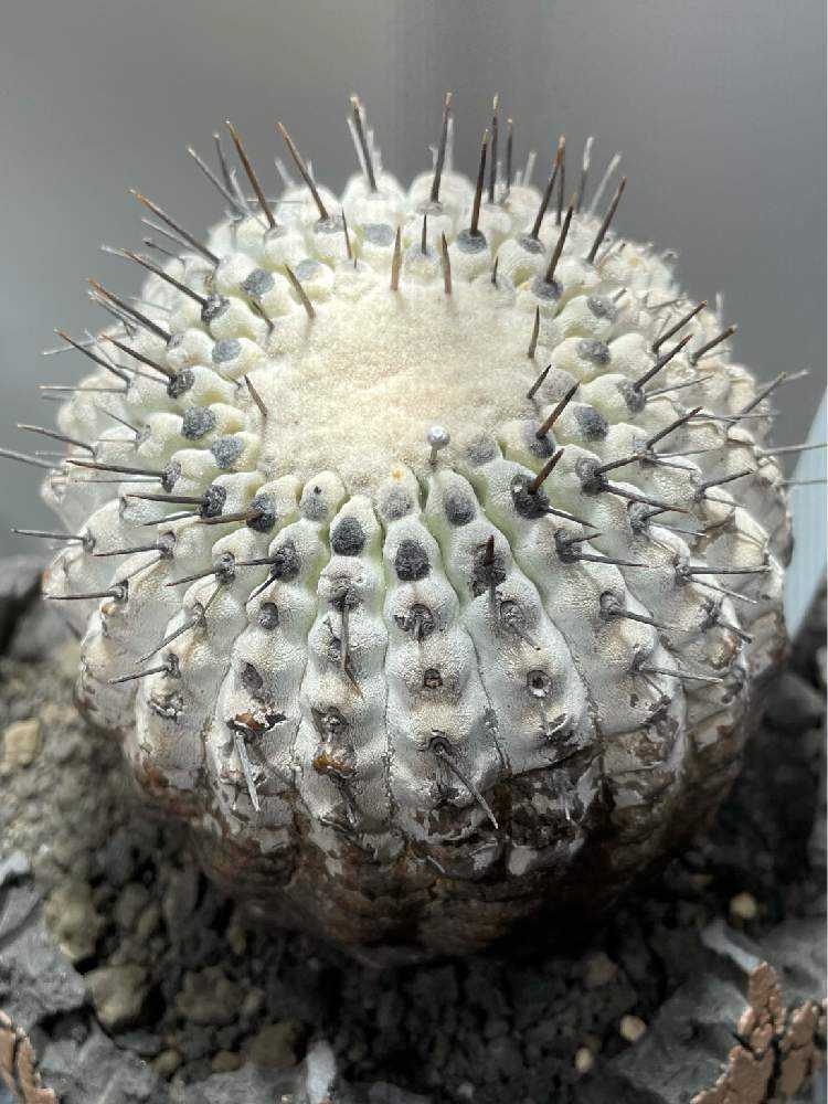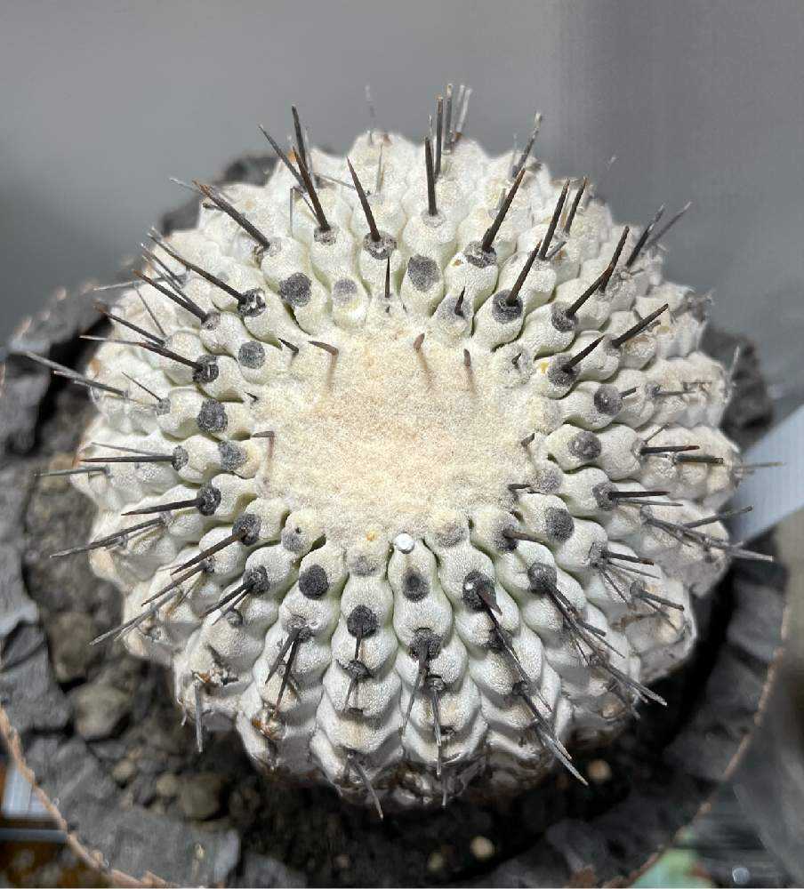 現地球黒王丸は日本で長く管理されると成長点付近から緑に変わって残念な見た目になりがちです。今株もしばらく日本で管理されていたのでしょうね、買った時点で成長点付近が少し緑っぽくなってました。