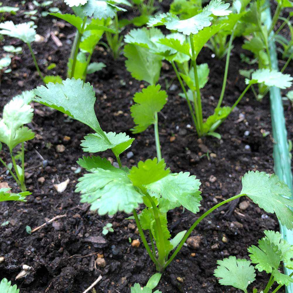 成長にムラはありますが、ようやく収穫を楽しめるサイズのパクチーも★