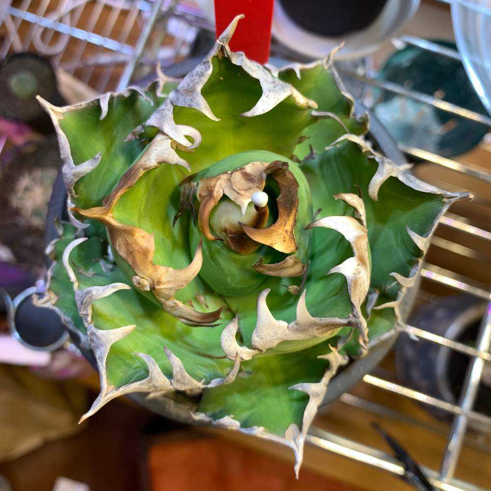 2021.4.28 成長点付近の葉先に粘土を付けました