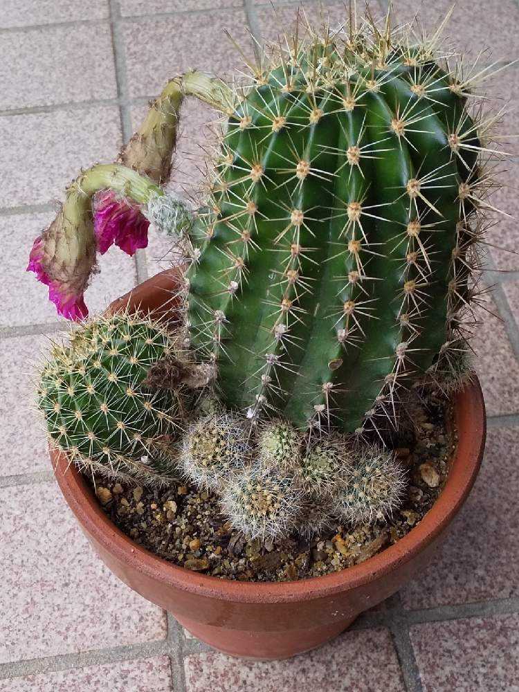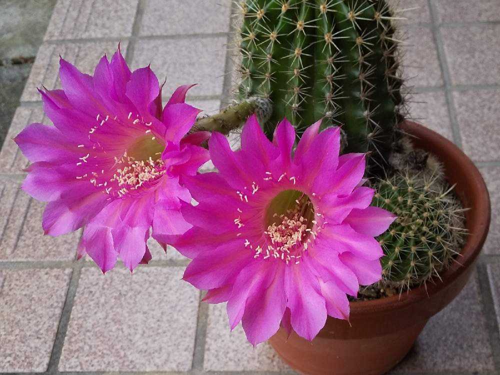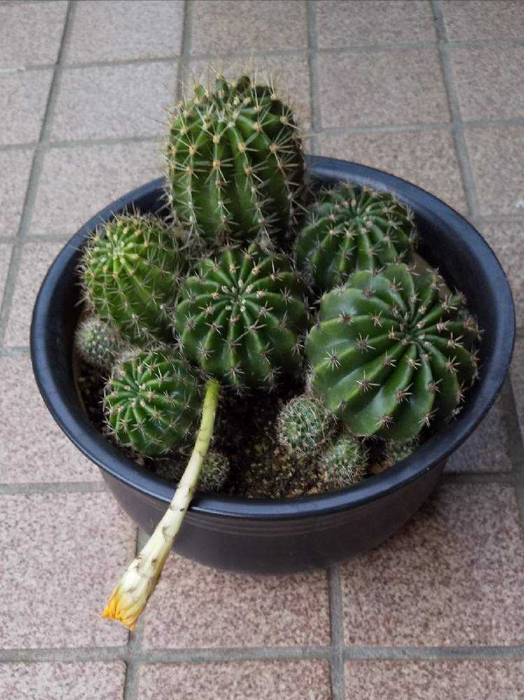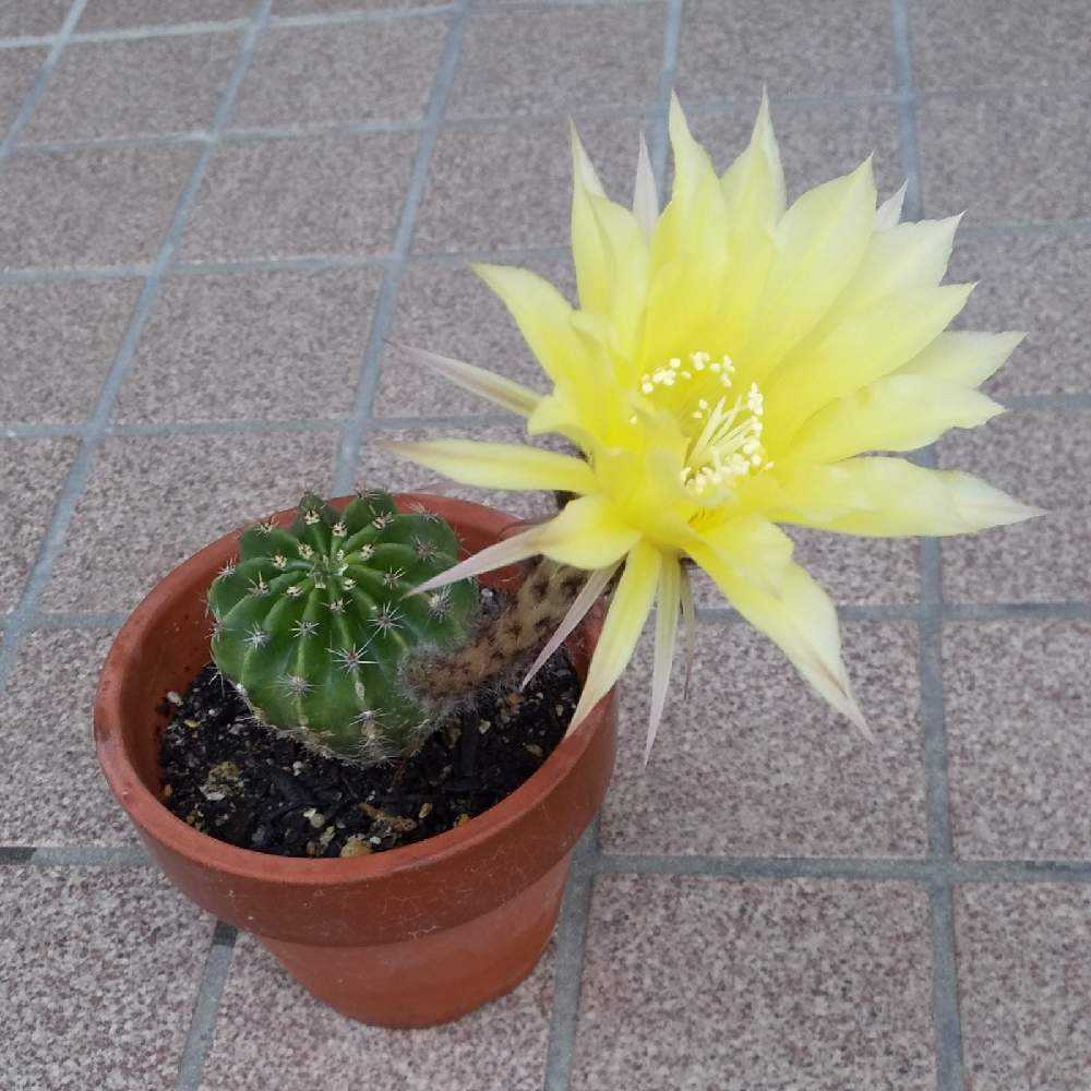 昨年頂いたサボテンが咲きました。朝なので半開きです。