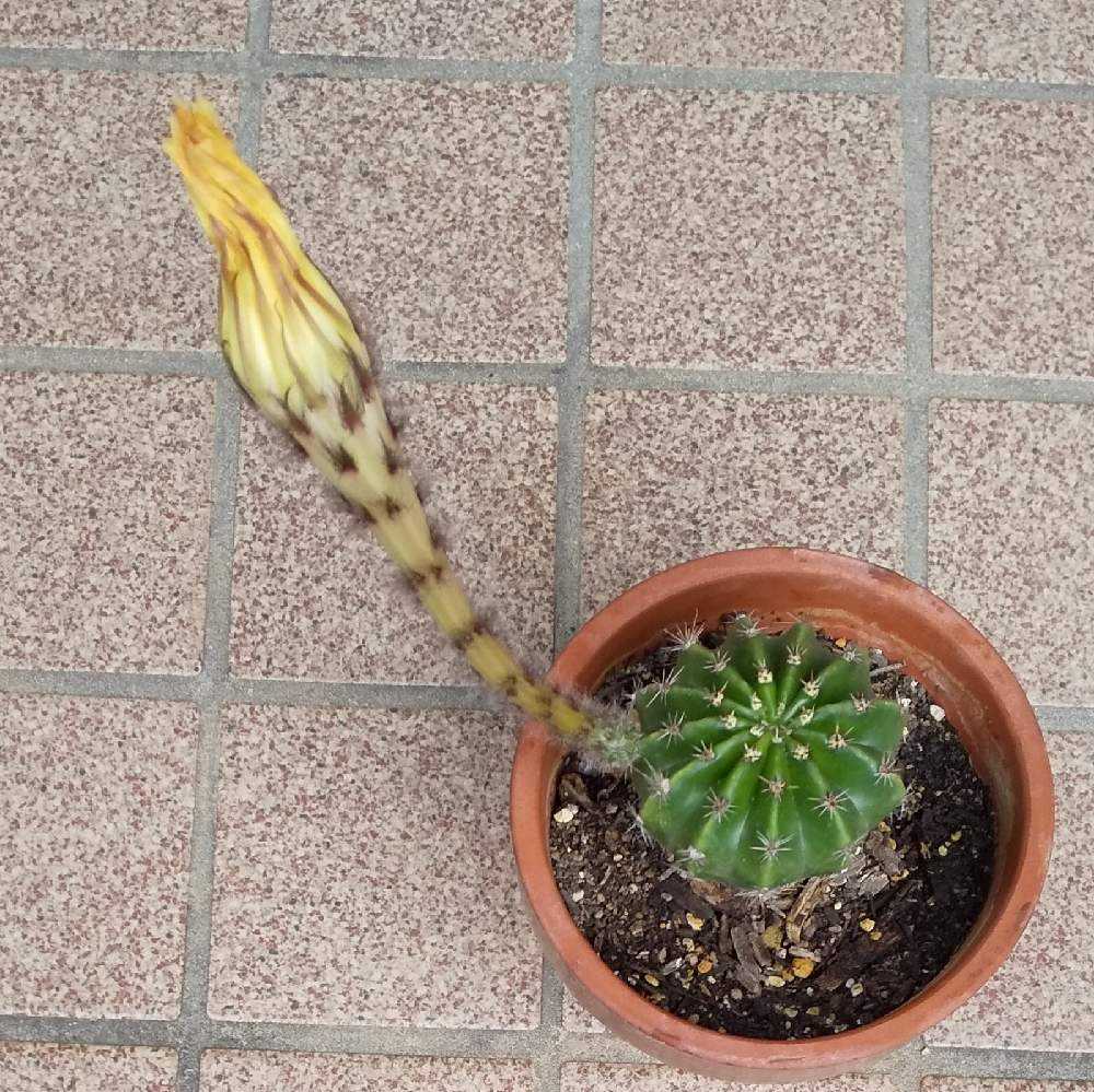 昨年頂いたサボテンが初めて開花。朝なので半開き。全開みれるかな?