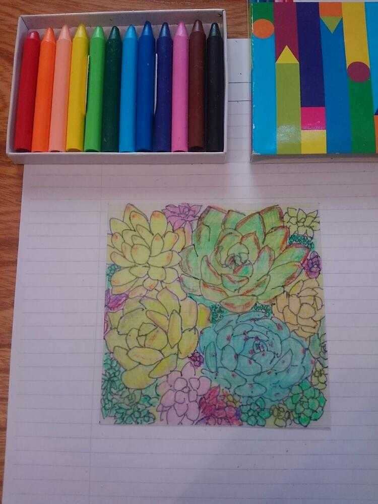 ひたすら塗ります。いろいろ試しましたが、クーピーやクレヨンのような油性のものが上手くぬれました。