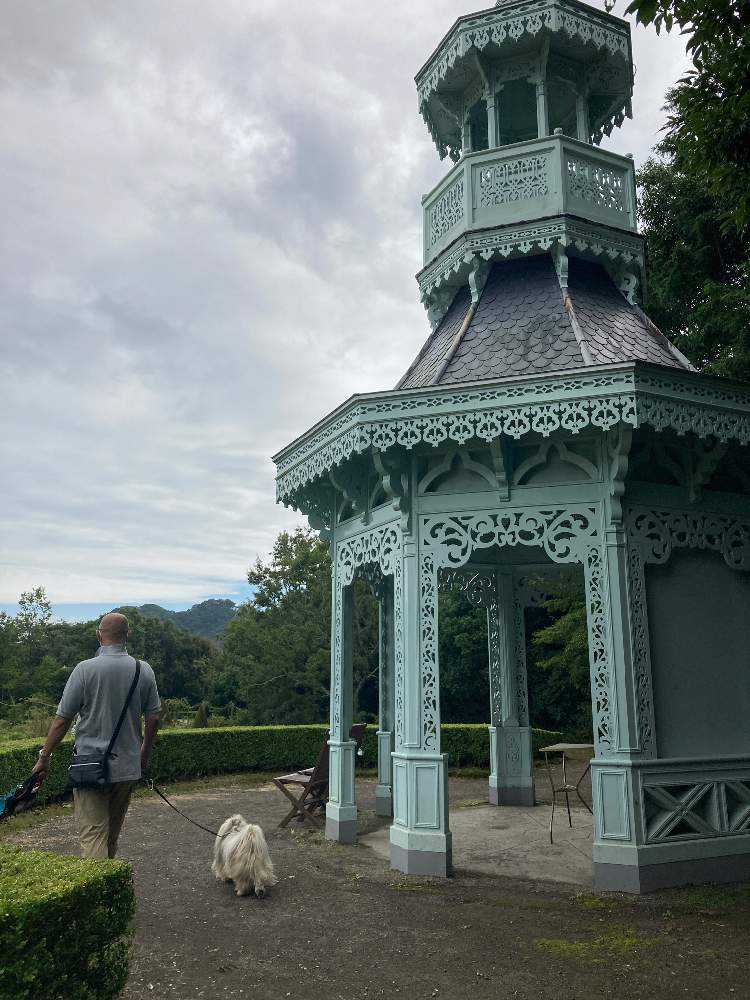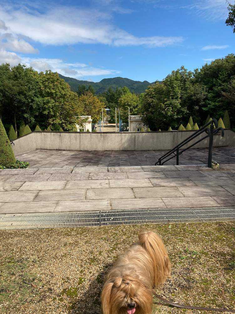 エントランス広場から庭園の門を見下ろす。