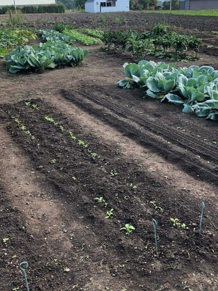 手前の小さな芽🌱。秋大根です。