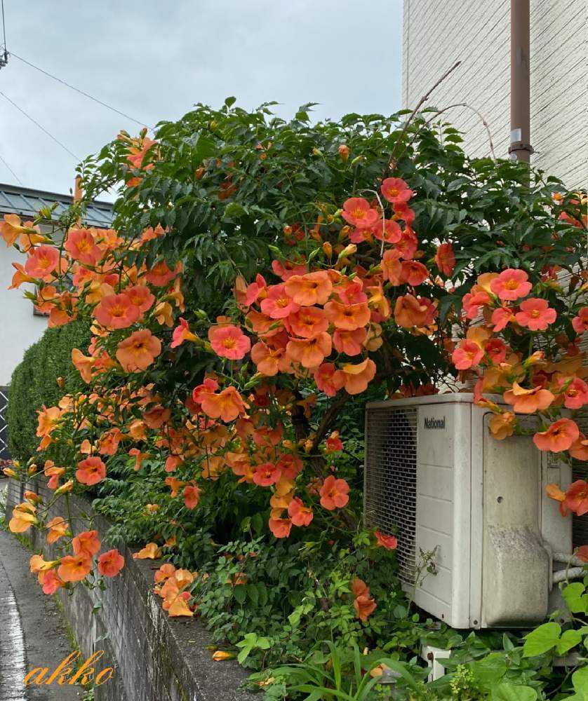 この花は庭の道側に咲いているノーゼンカズラ 花の感じが平くてオレンジ🧡