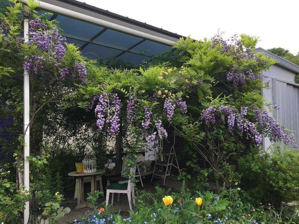 つる性の花は、棚に這わせたり、壁に這わせたり、