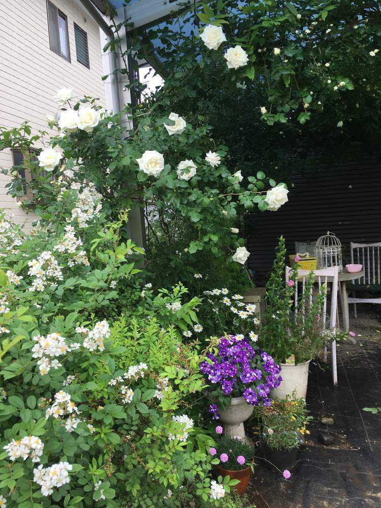 我が家の花畑の入り口は白コーナー