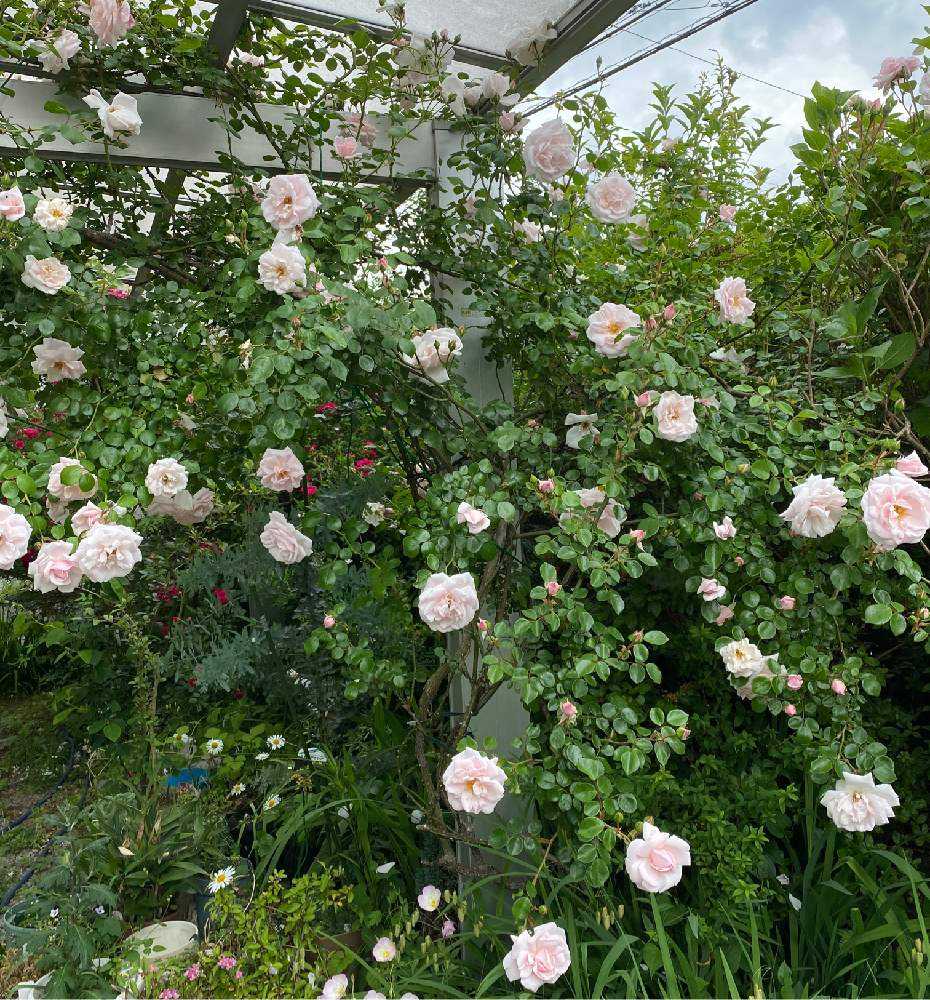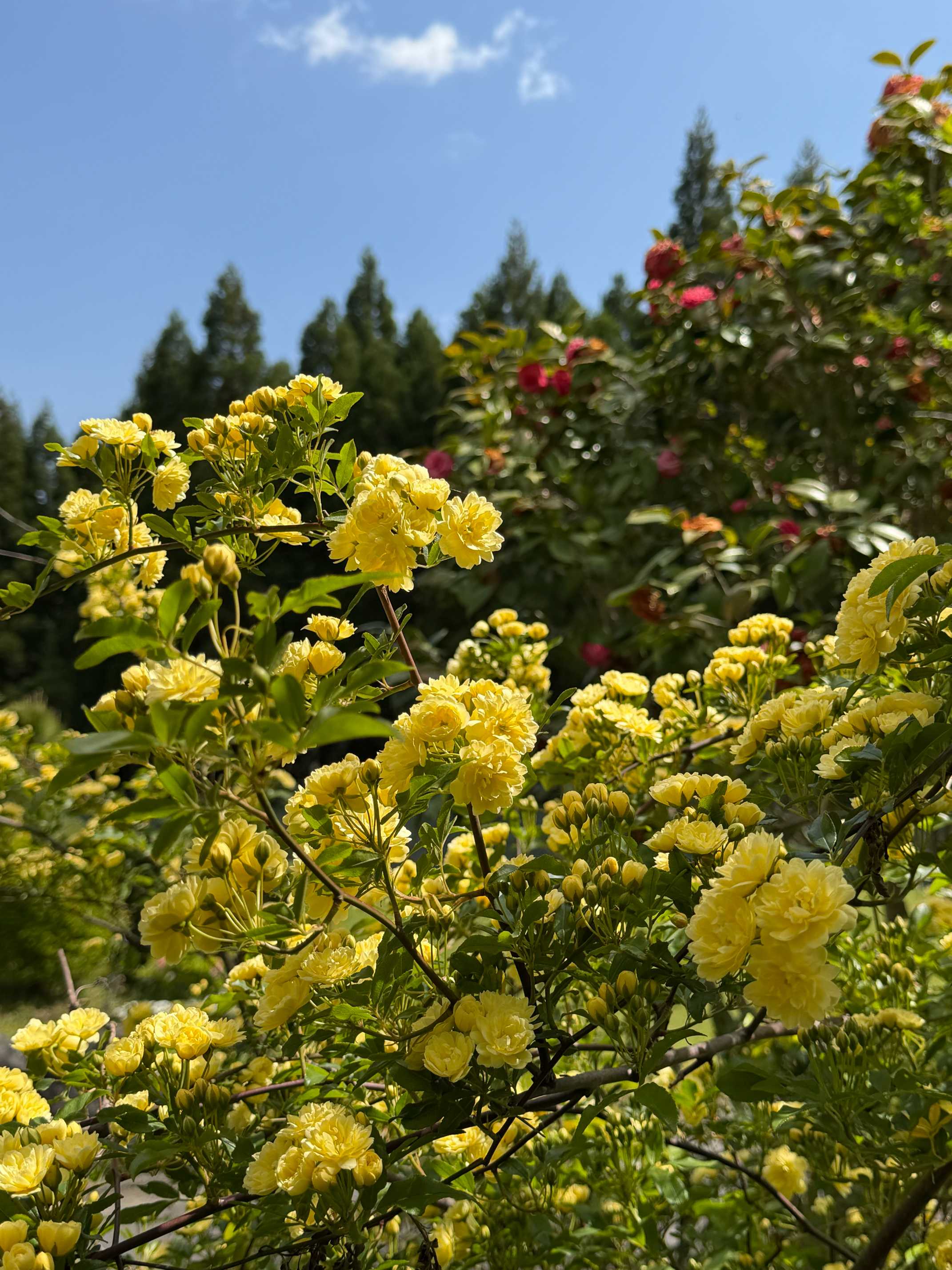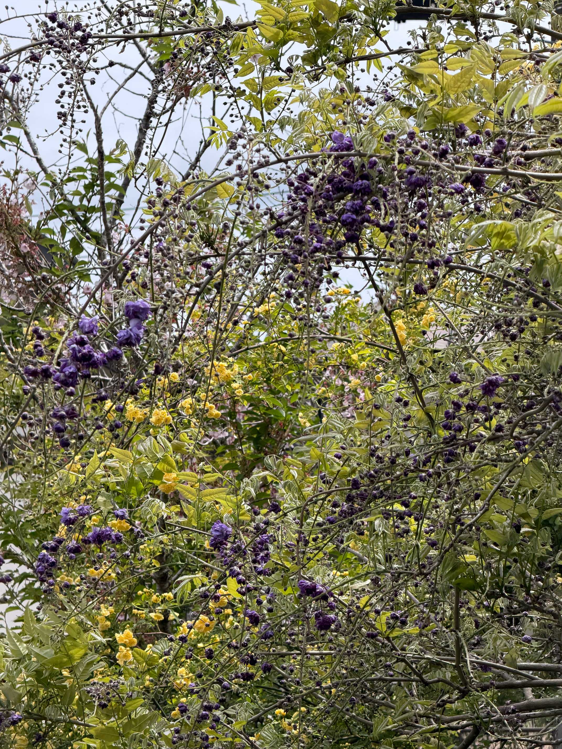 黄木香薔薇と絡み合って,ごちゃごちゃになりそうです