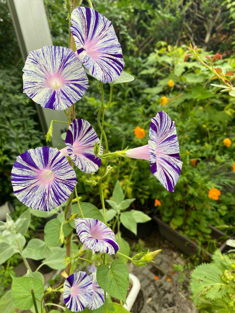 朝顔はご近所の花友さんからいただいて