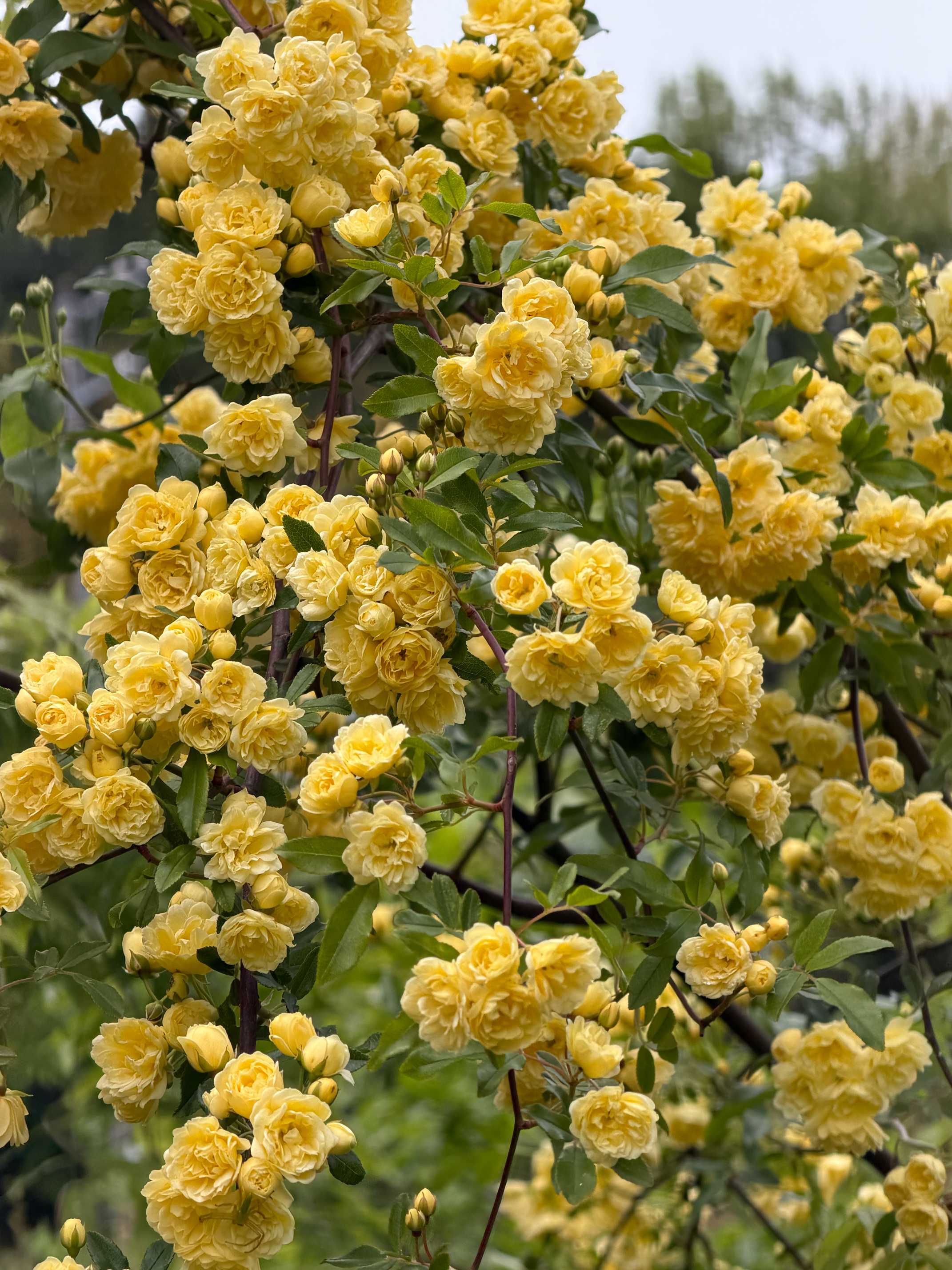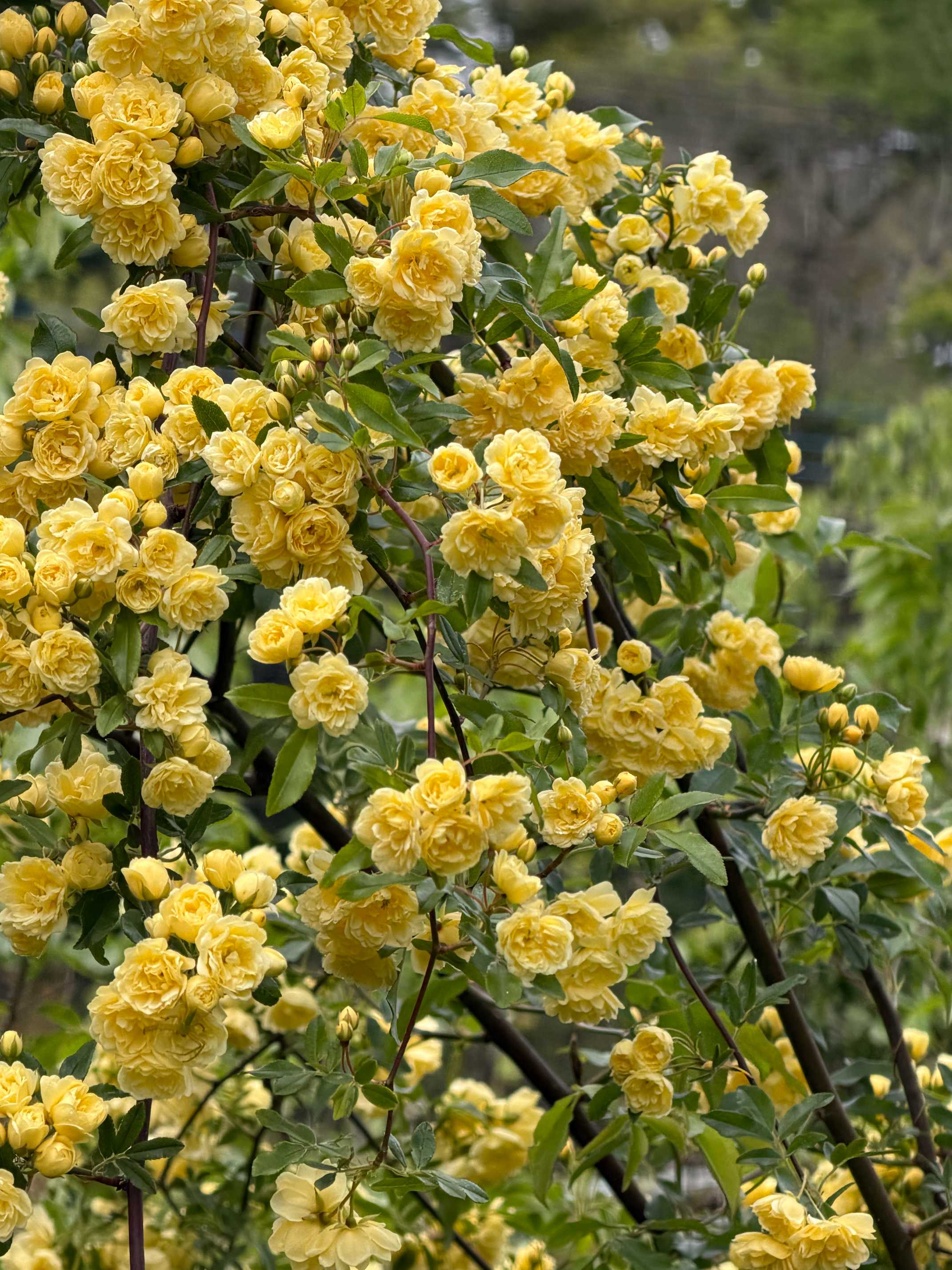 2026年春の黄木香薔薇は,アーチの外で,もりもりになってます