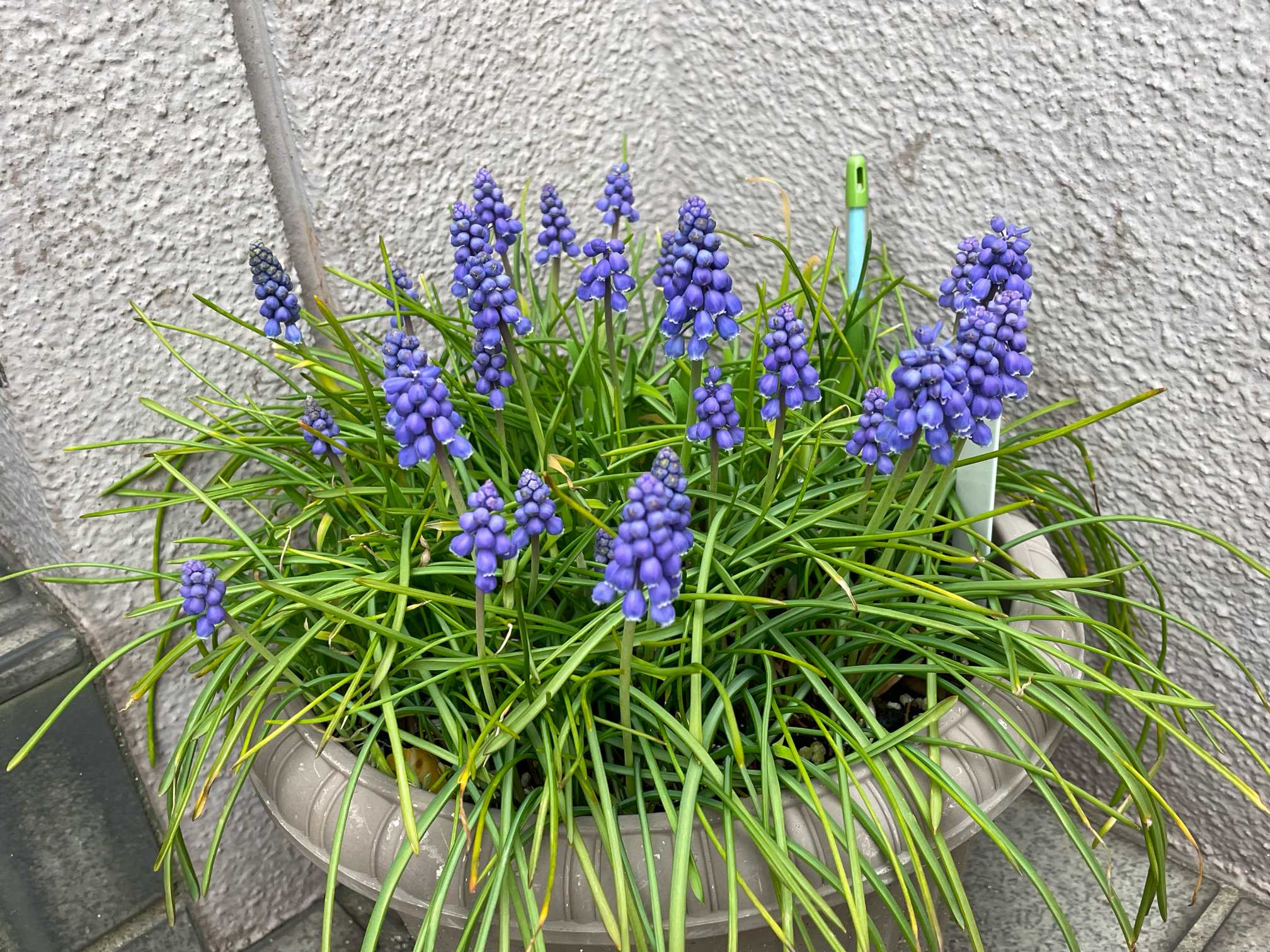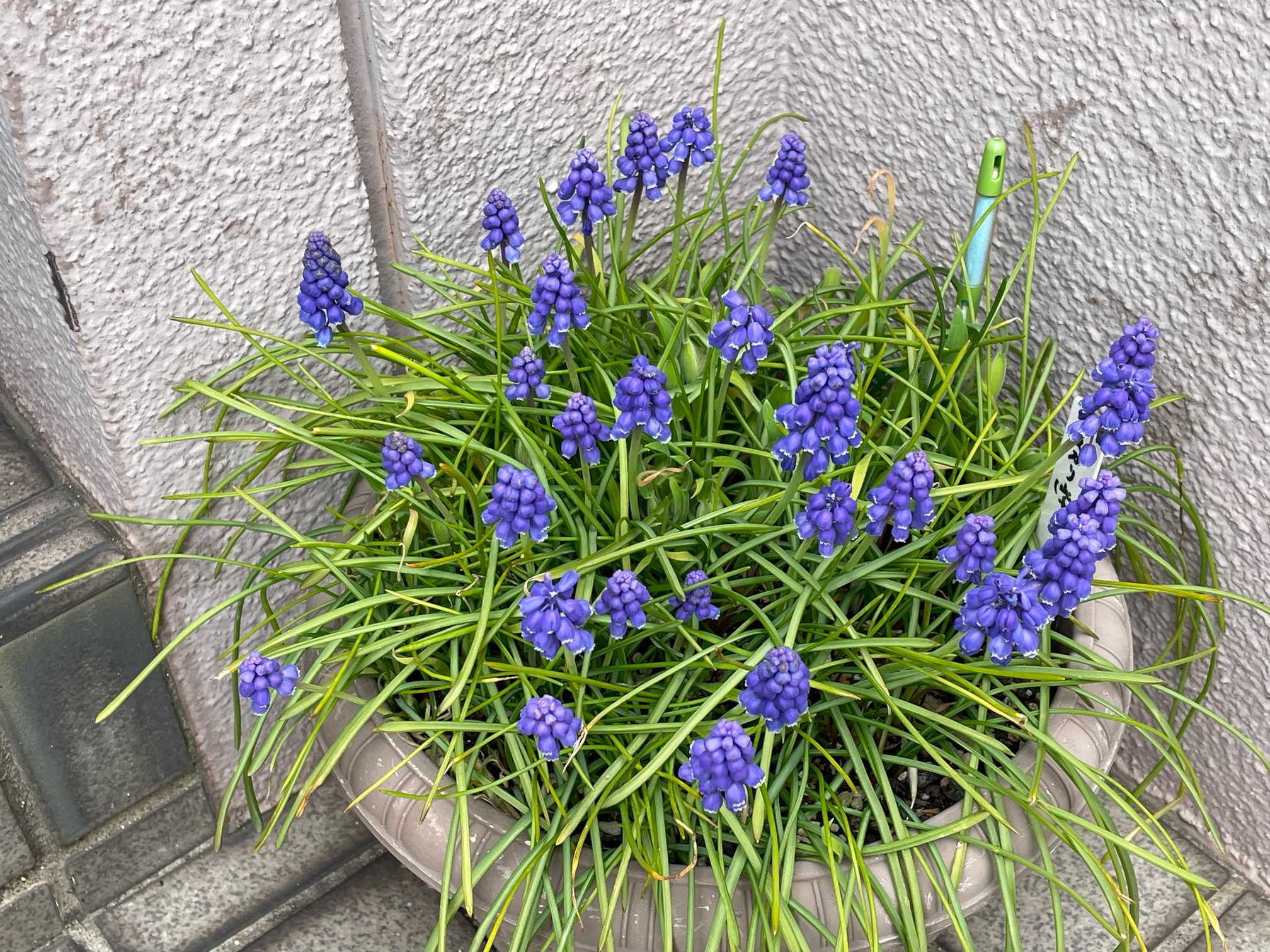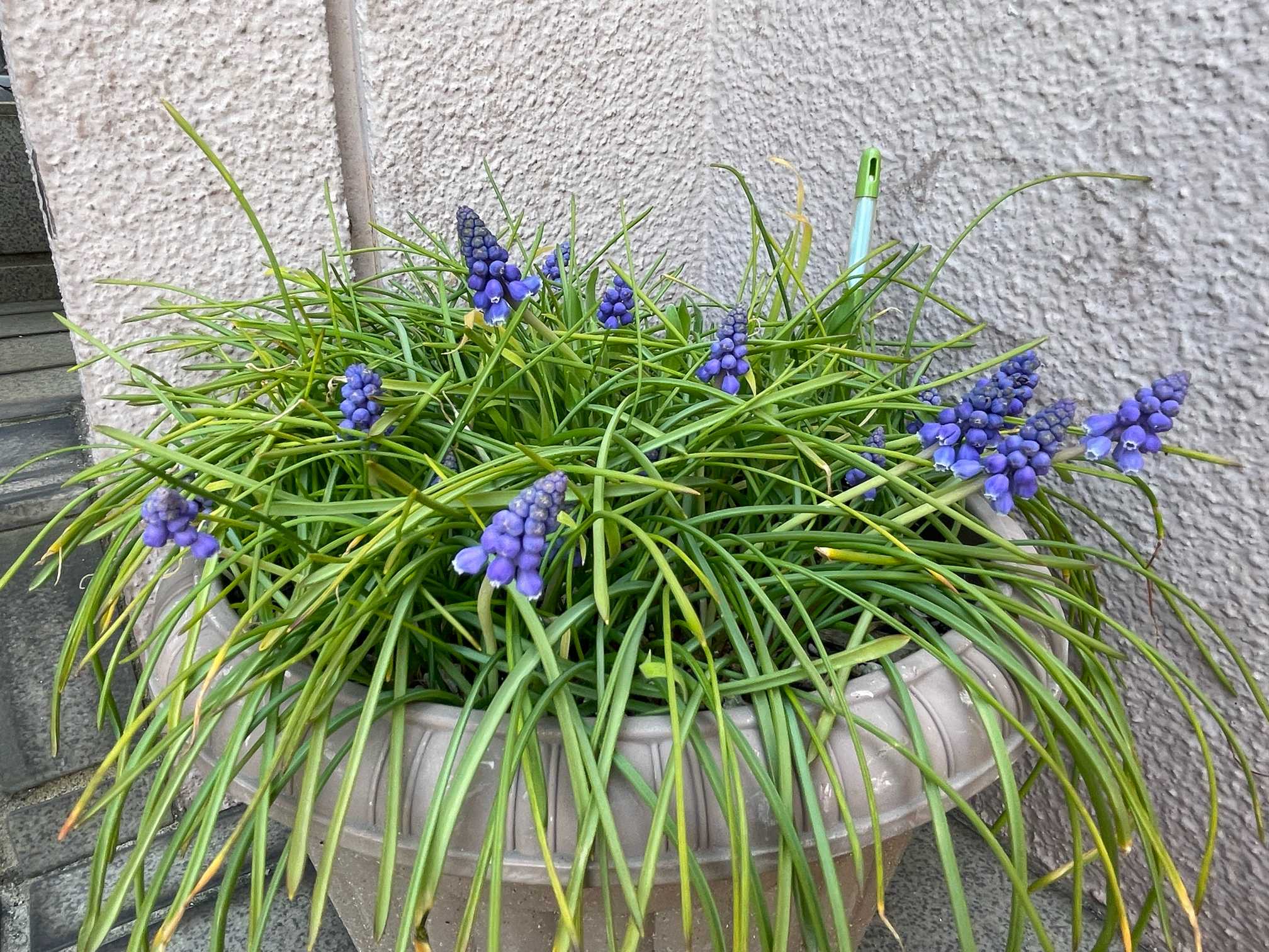 旦那が植えてるスノーフレークちゃんも、私が上に鉢置いてて黄ニラ状態のところから復活したから、きっとムスカリちゃんも大丈夫。