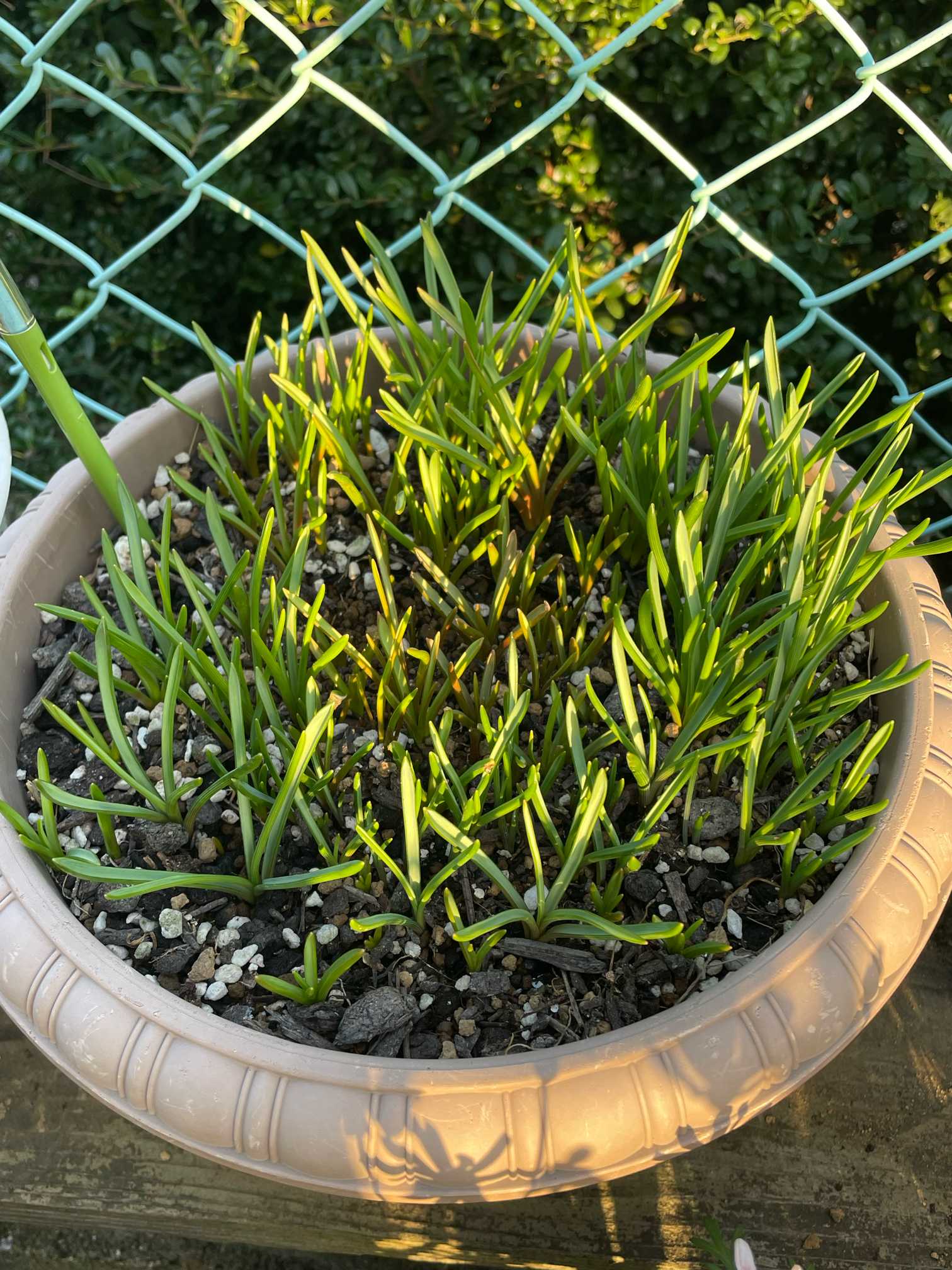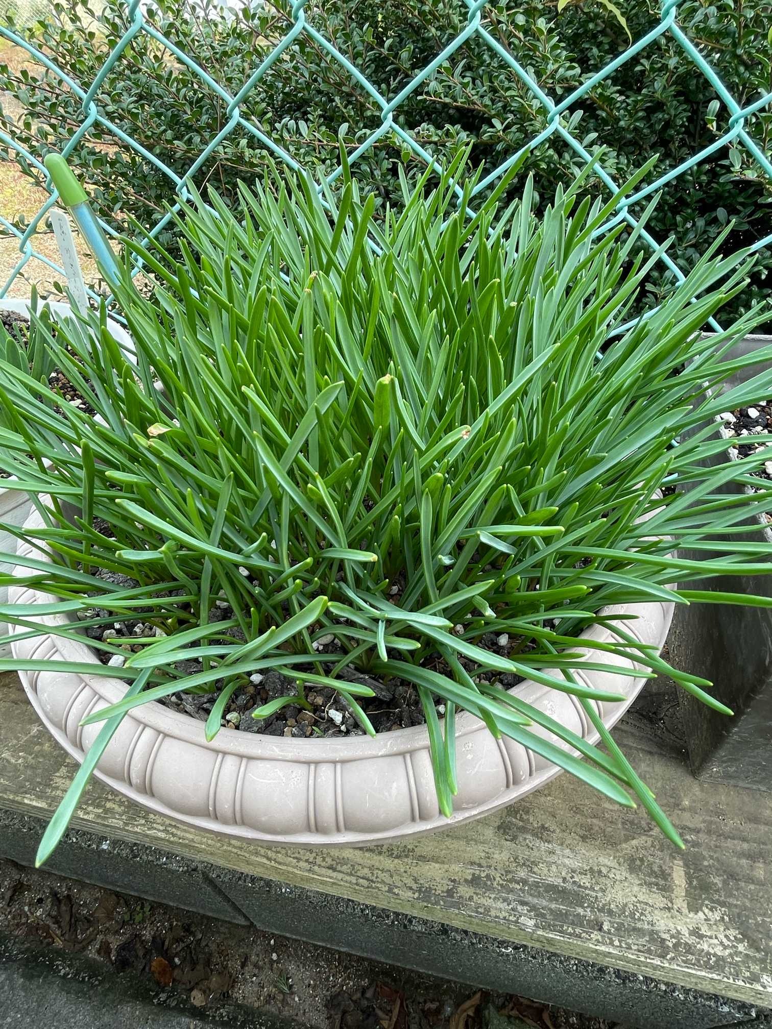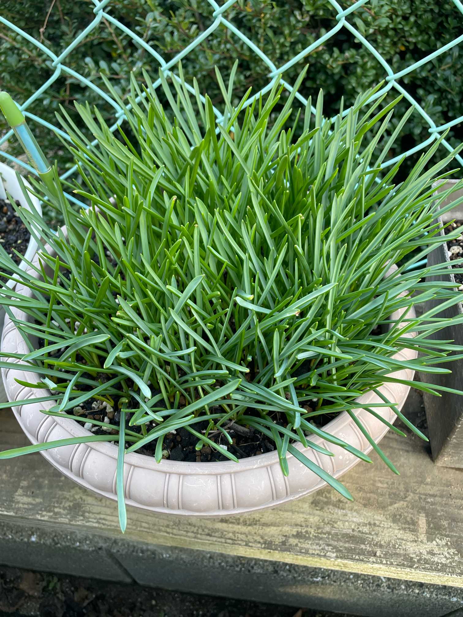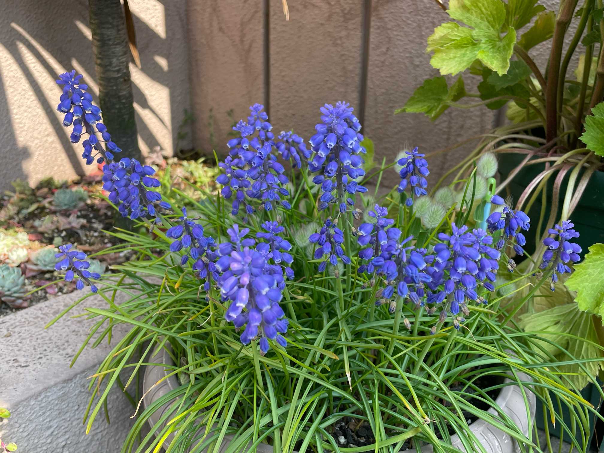 旦那が植えてるスノーフレークちゃんも、私が上に鉢置いてて黄ニラ状態のところから復活したから、きっとムスカリちゃんも大丈夫。