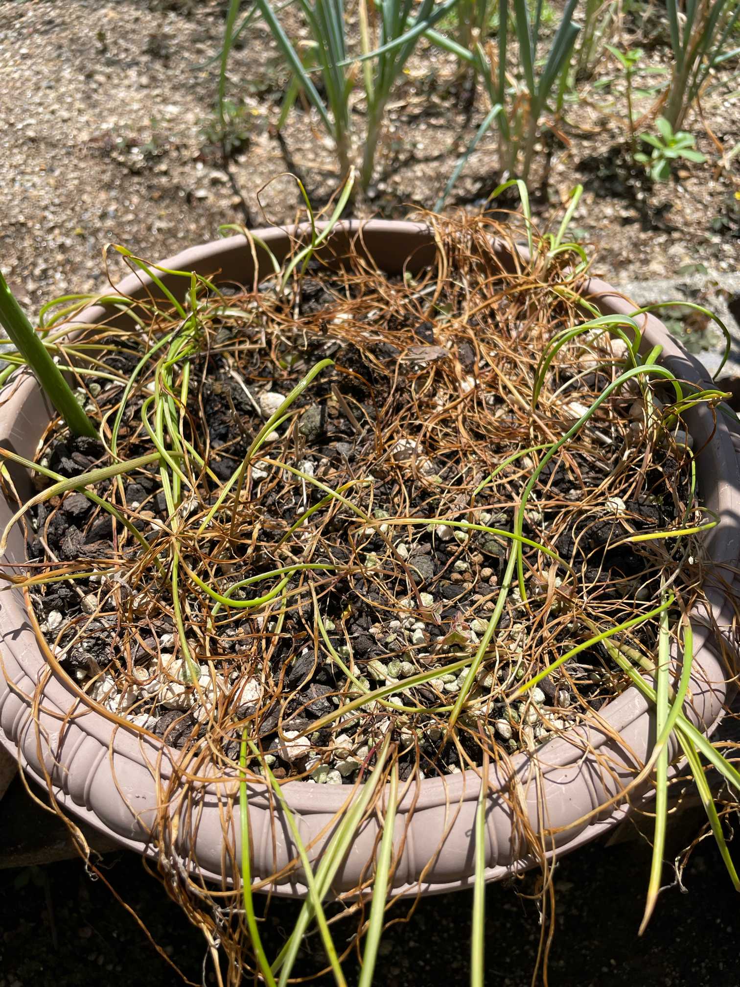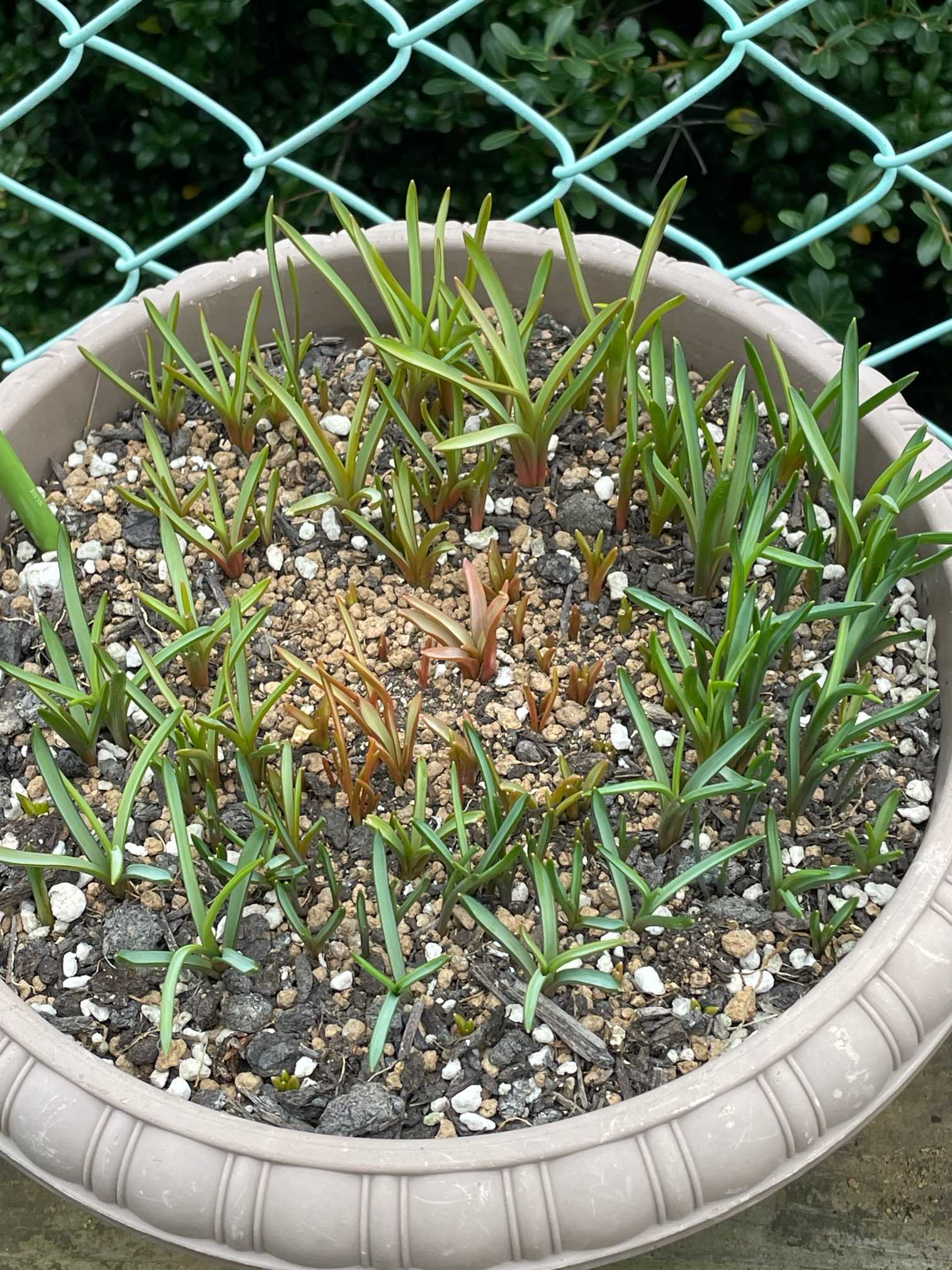 カット✂️して、肥料あげておこう。球根 太らせてね🙋♀️