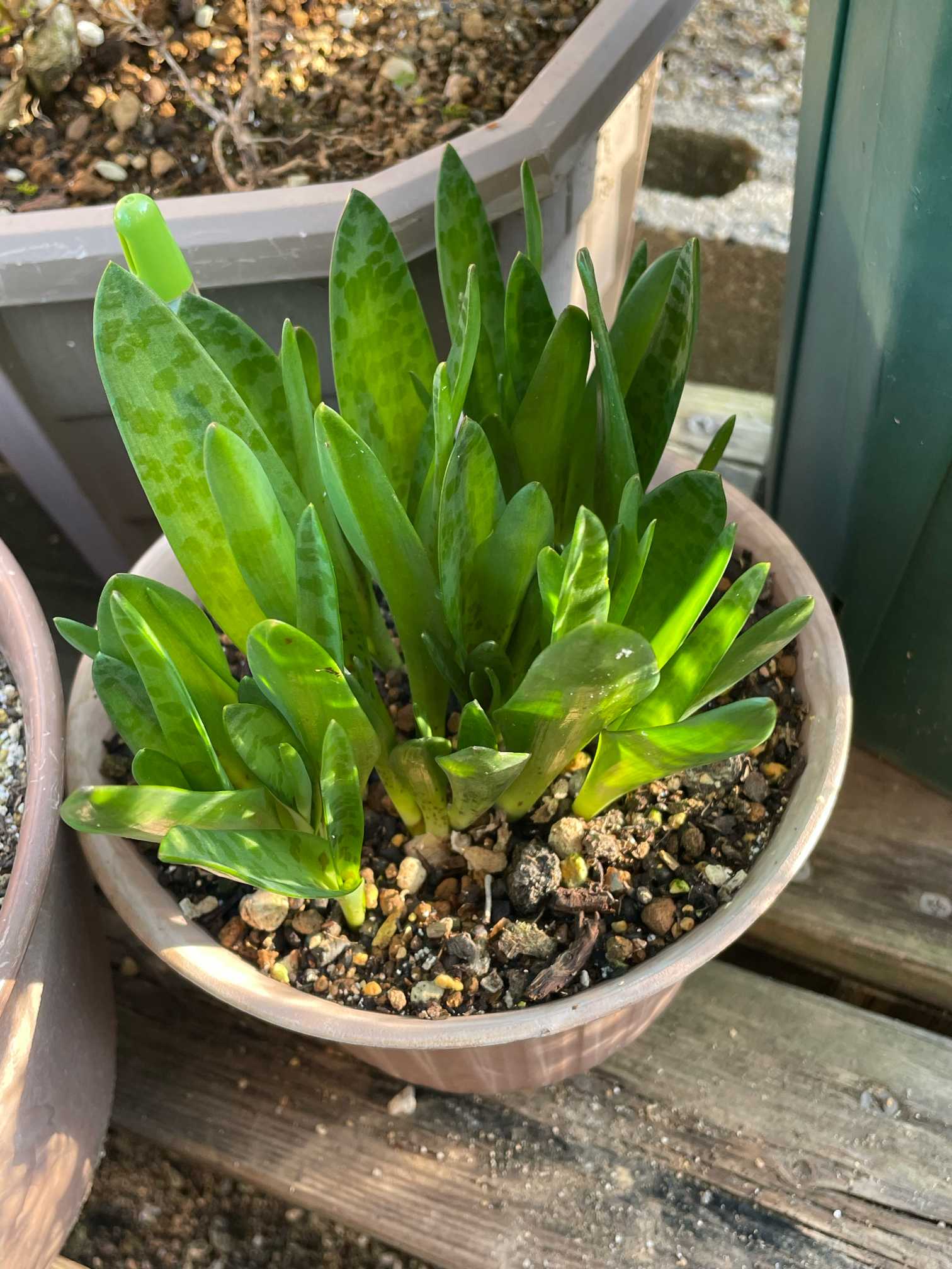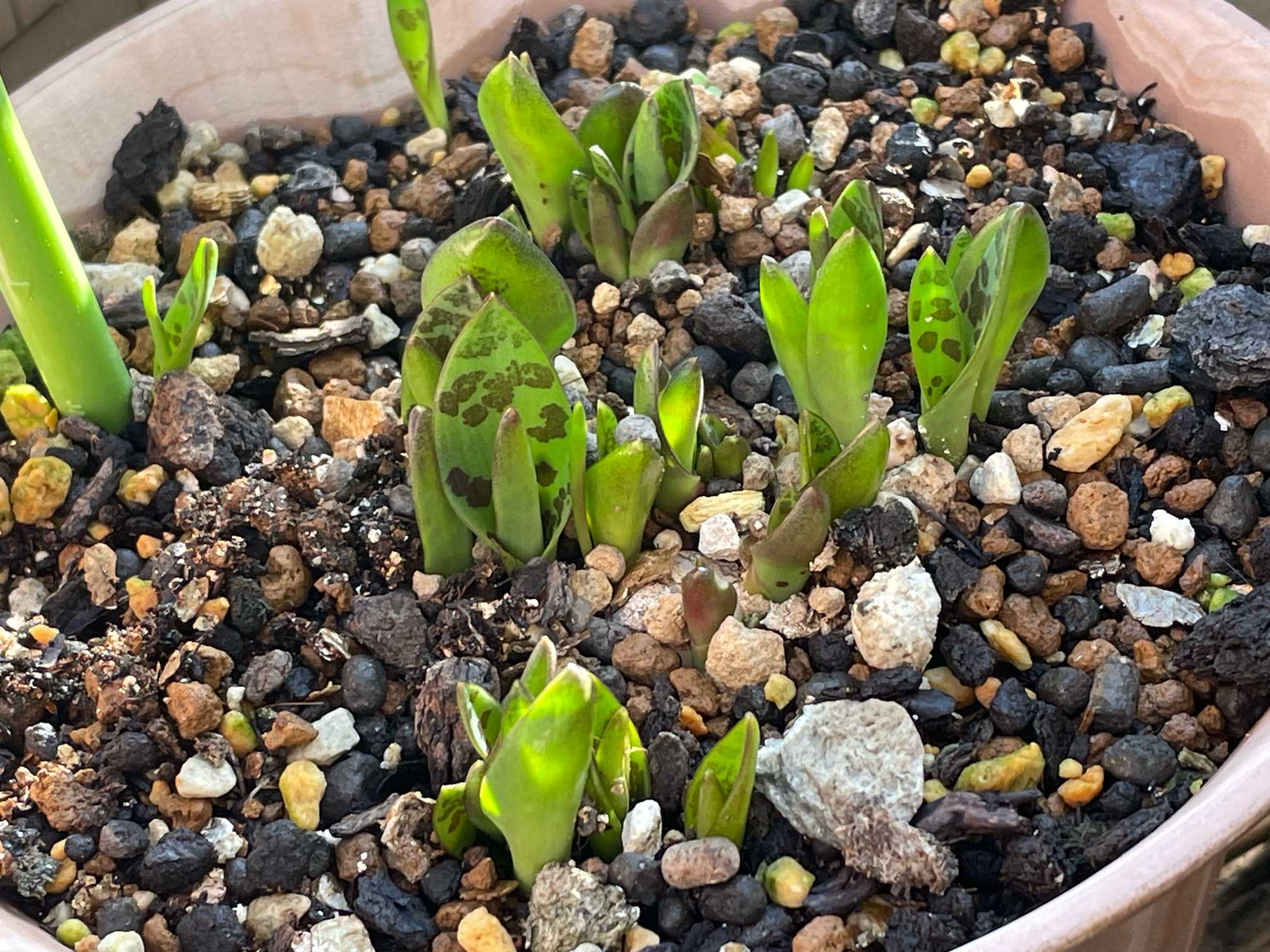 ちょっと前から水やり始めたら、球根が盛り上がって来て、芽🌱が出てきました😳