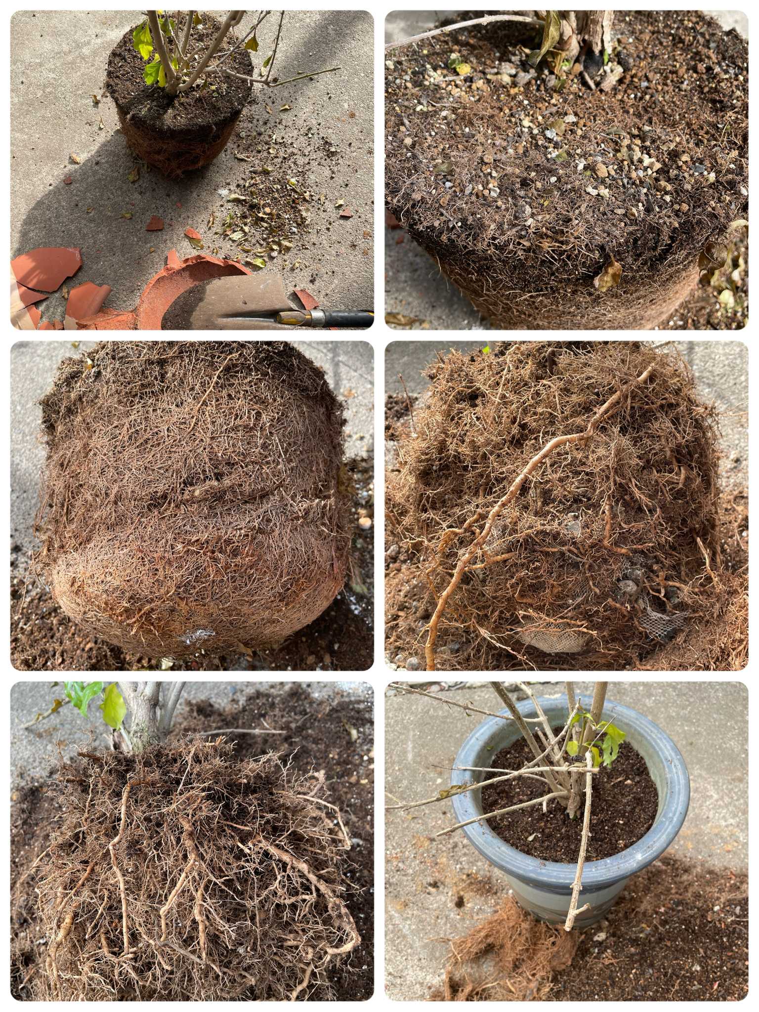 おまけに以前から割れていた鉢が根の力に負けて割れてしまいました。