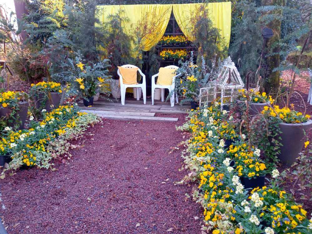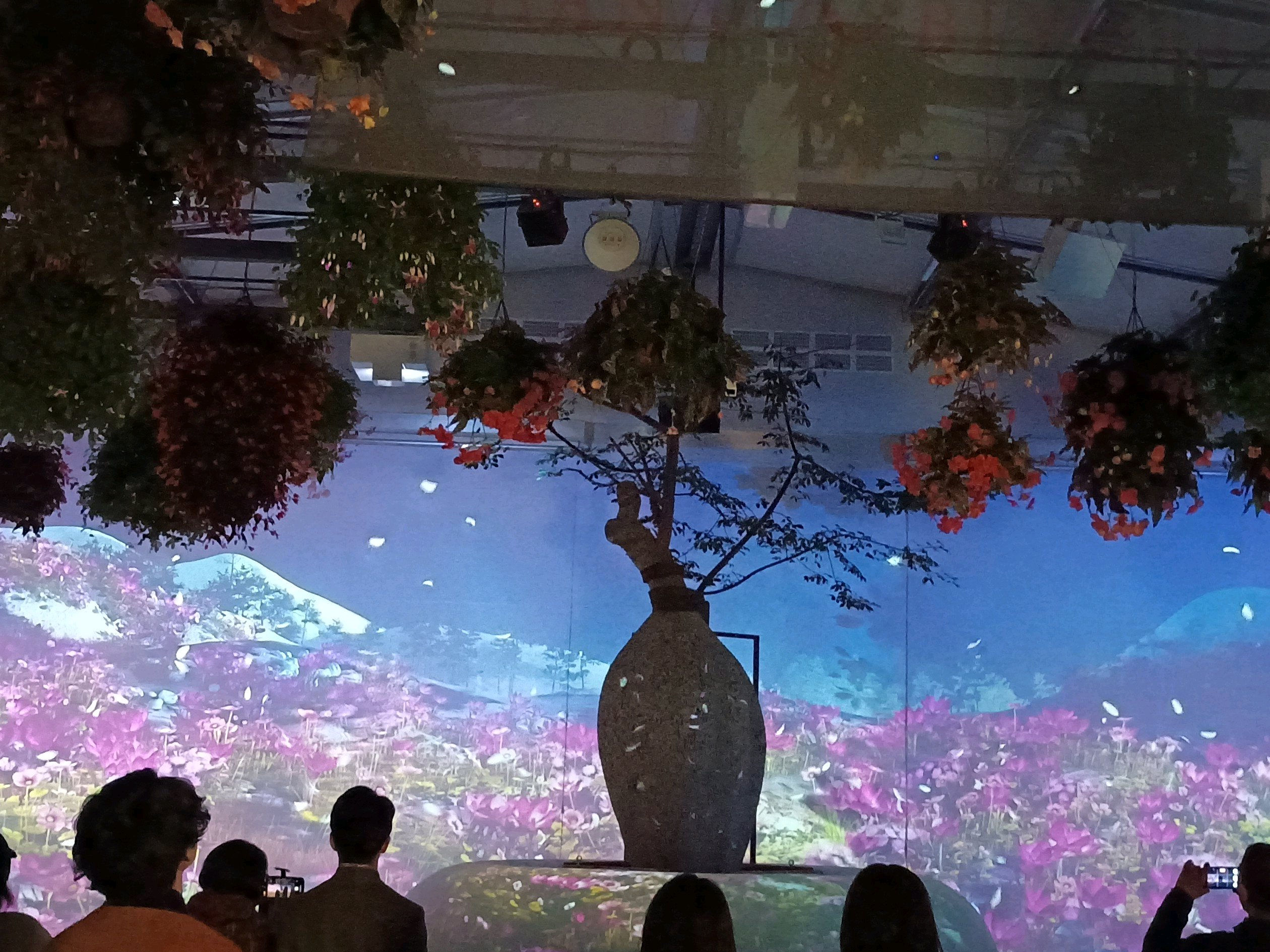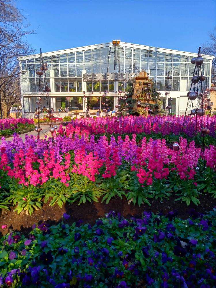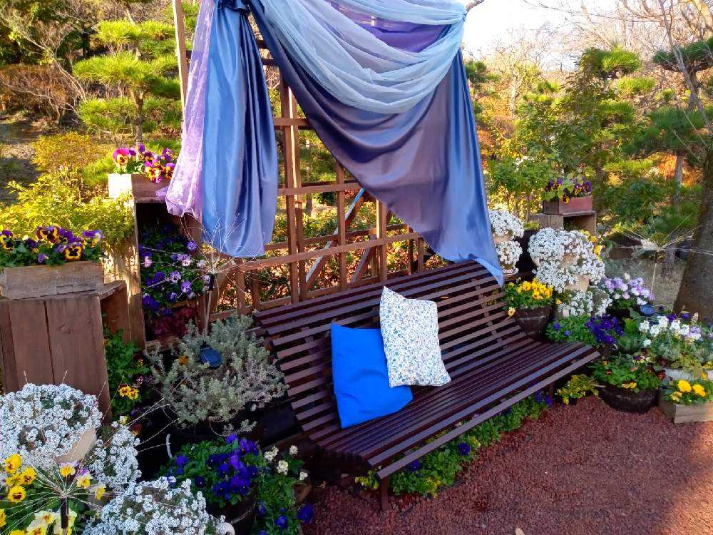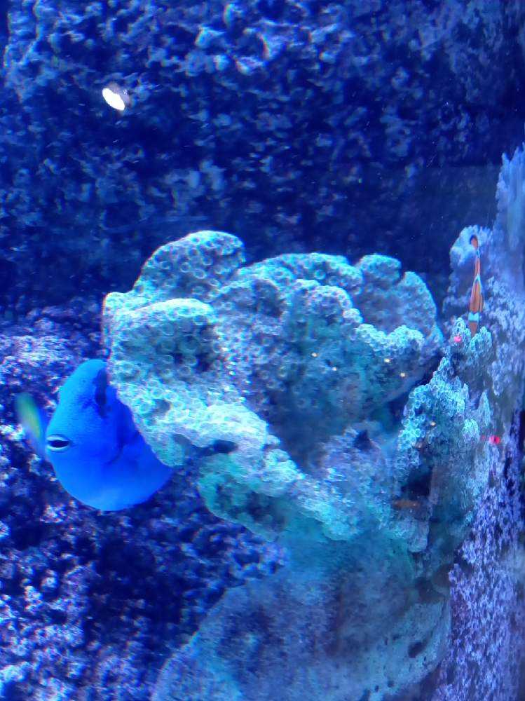 スタバの店内は花と緑と色鮮やかな熱帯魚の水槽に伐採された木を活かした椅子やテーブル