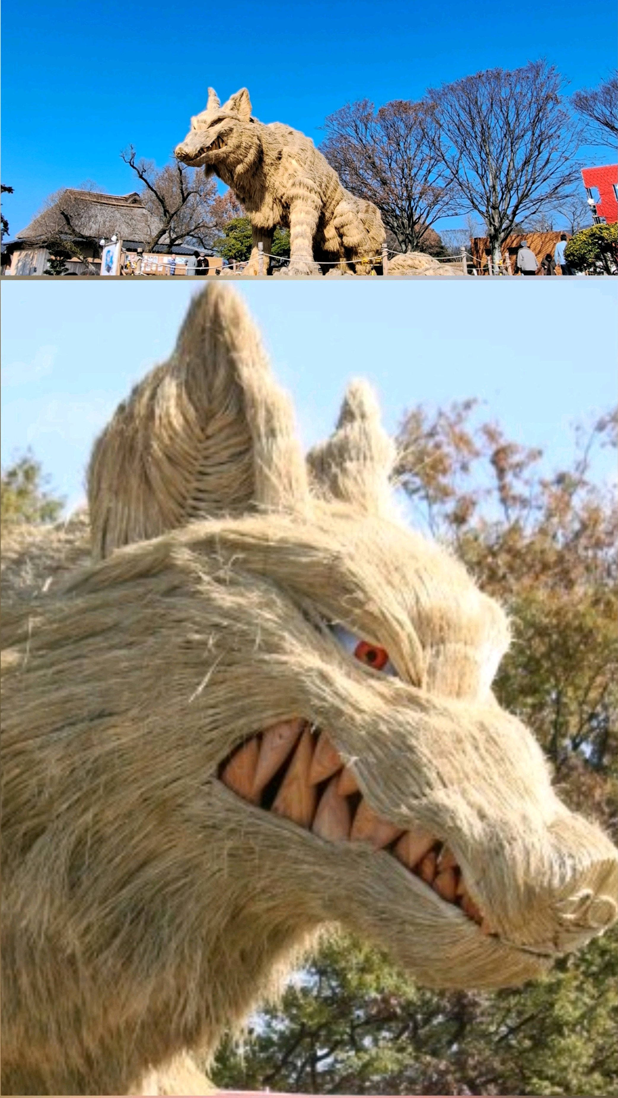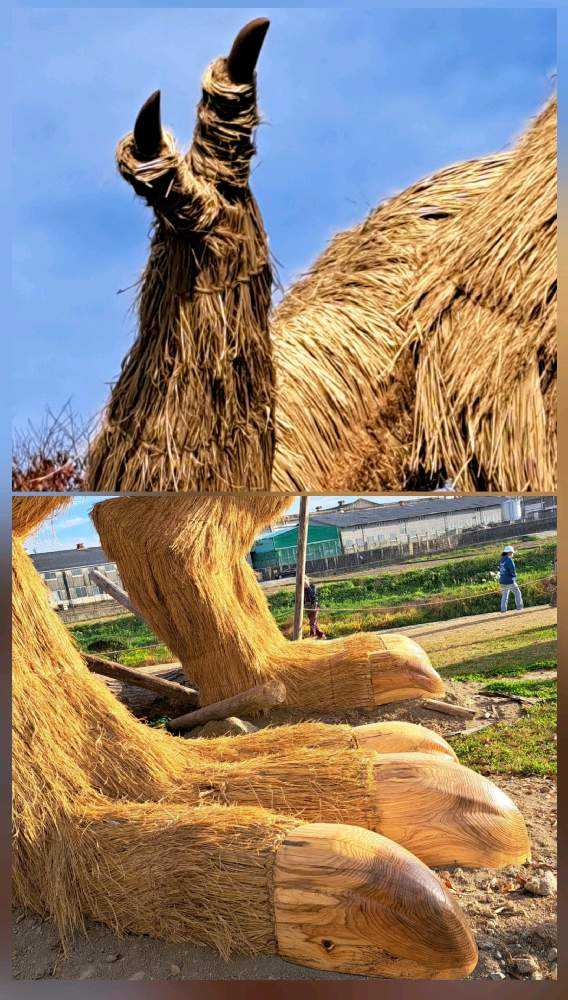 わらで再現された見事な毛並みと長くりっぱな尾