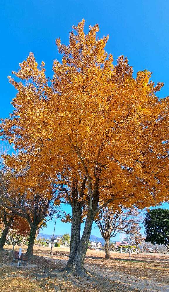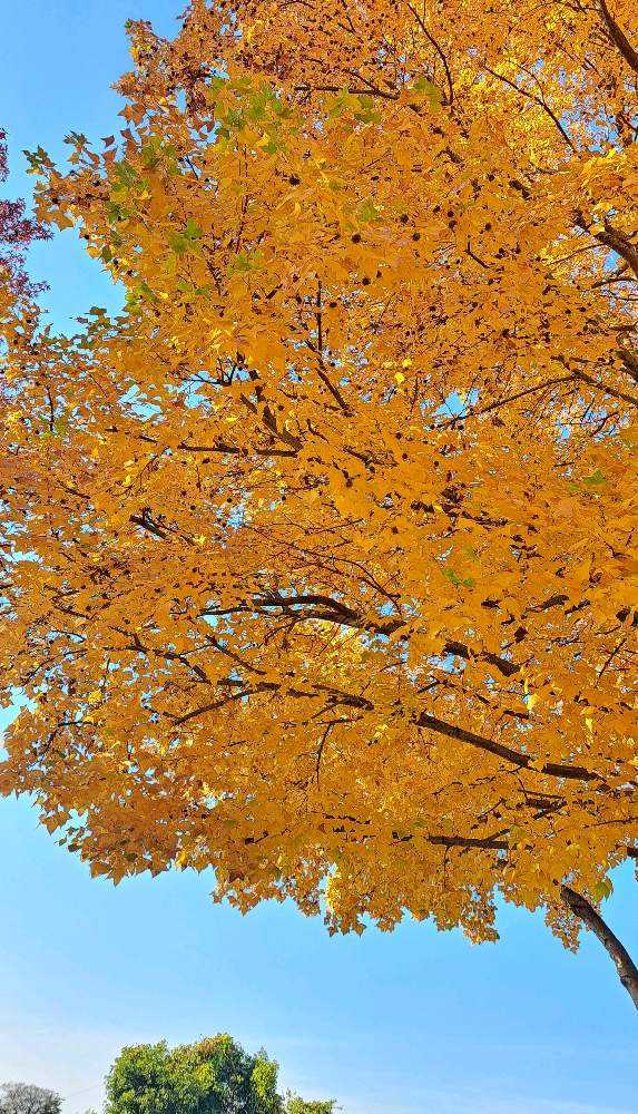 モミジバフウの紅葉、キラキラ輝いています🧡🧡