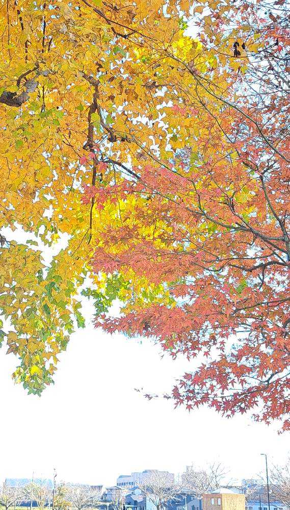 モミジバウフの緑の葉も赤い葉も僅かに残ってて綺麗です♡♡