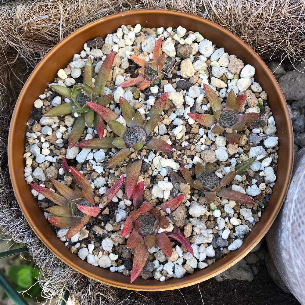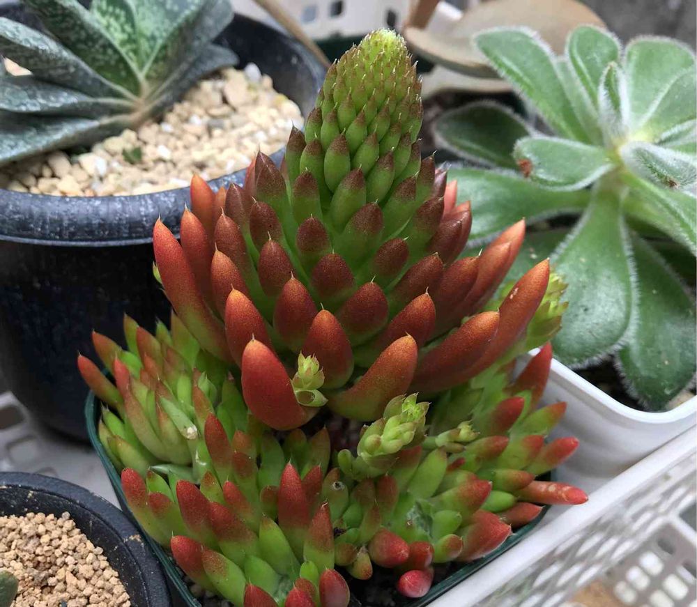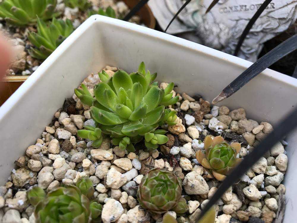こんもり山は子持ち蓮華と一緒で、花芽としてどんどん伸びて最後は枯れるみたい。早急に花芽と子株達を分離しよう