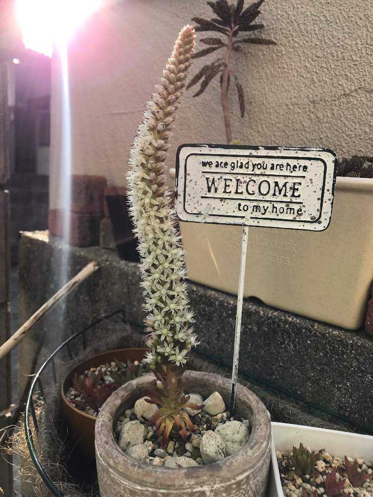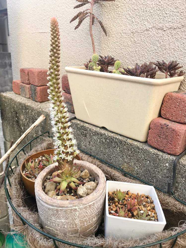 大きな花芽の株元からニョロっと出ていた小さな花芽も分離後、寄せ植えの脇で開花(*´艸`*)