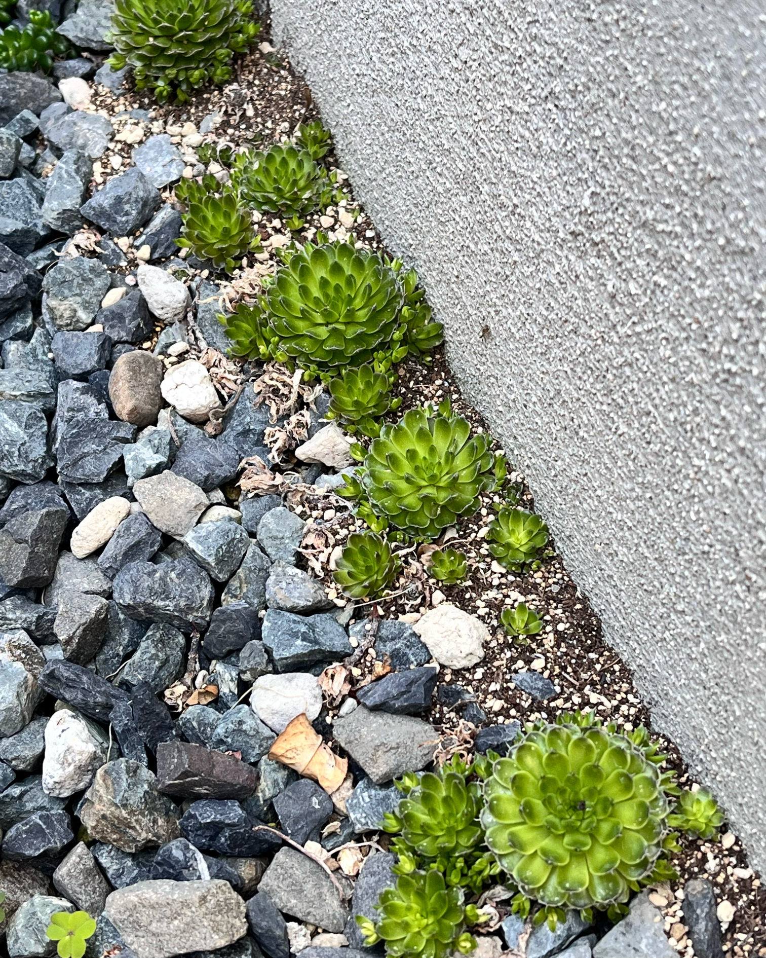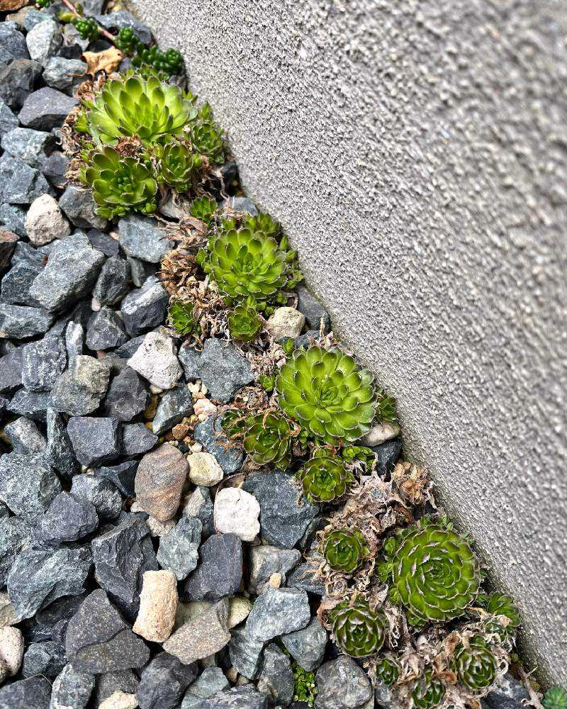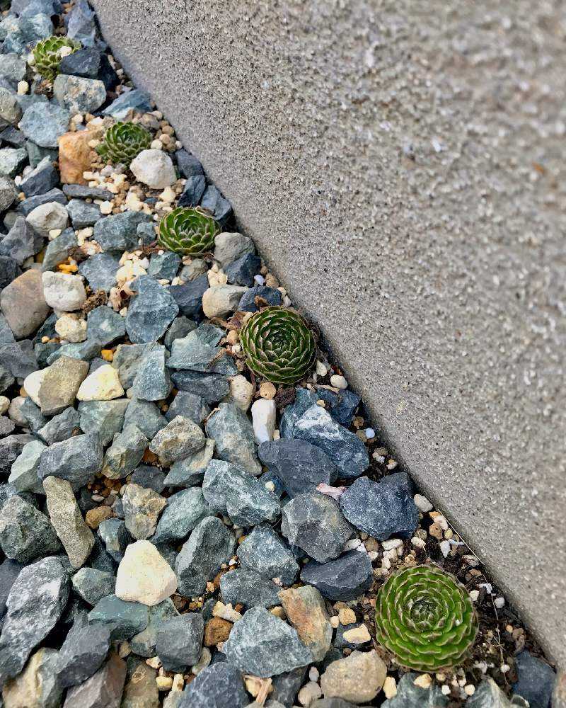 コレは砂利通路の隅っこに少量土を入れて移植した子達。少量の土でも大丈夫な様子