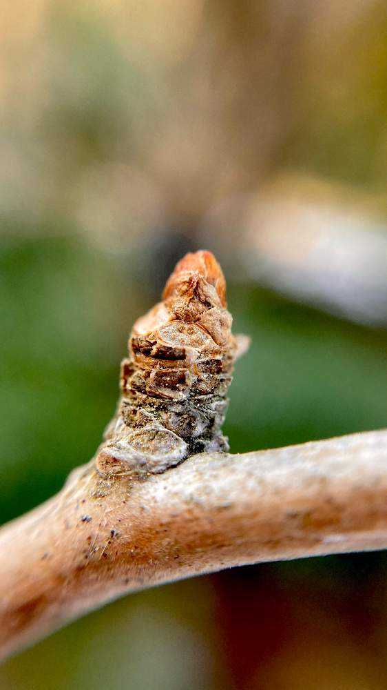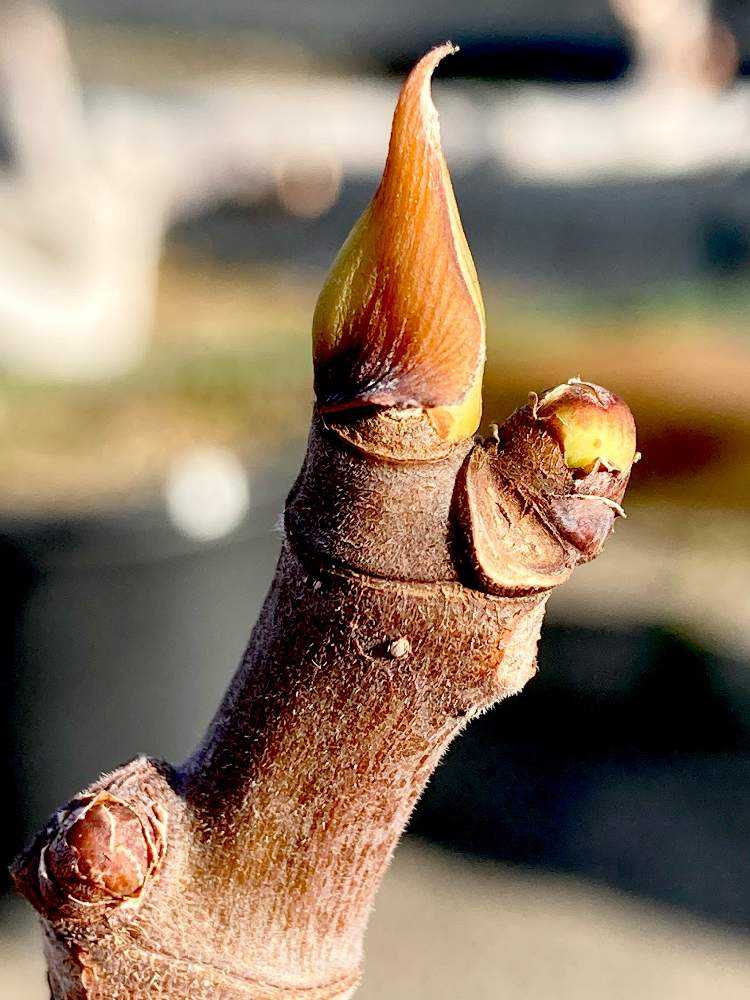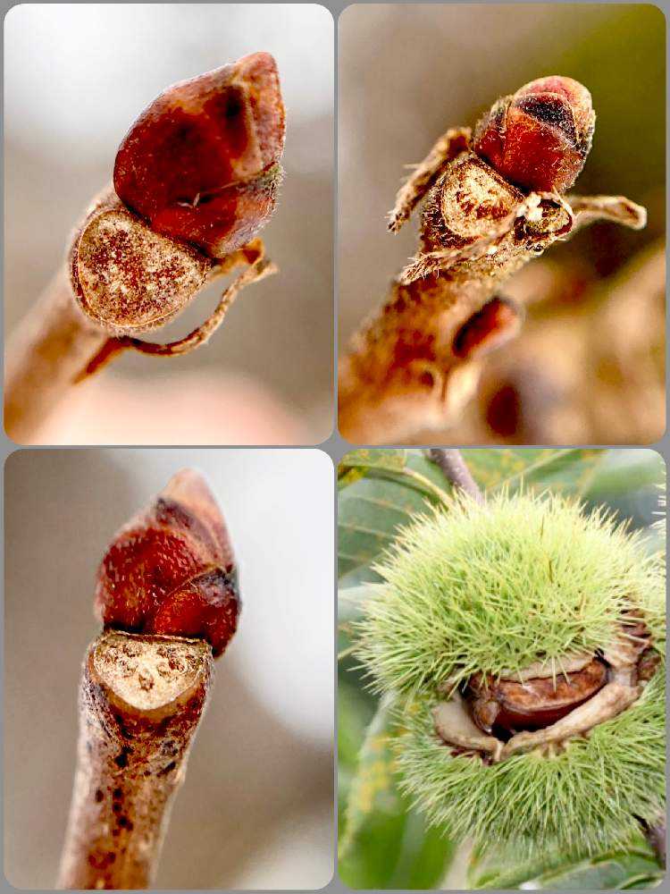 冬芽はおむすび形!丸みのある三角形は栗の実🌰に似ていますね!