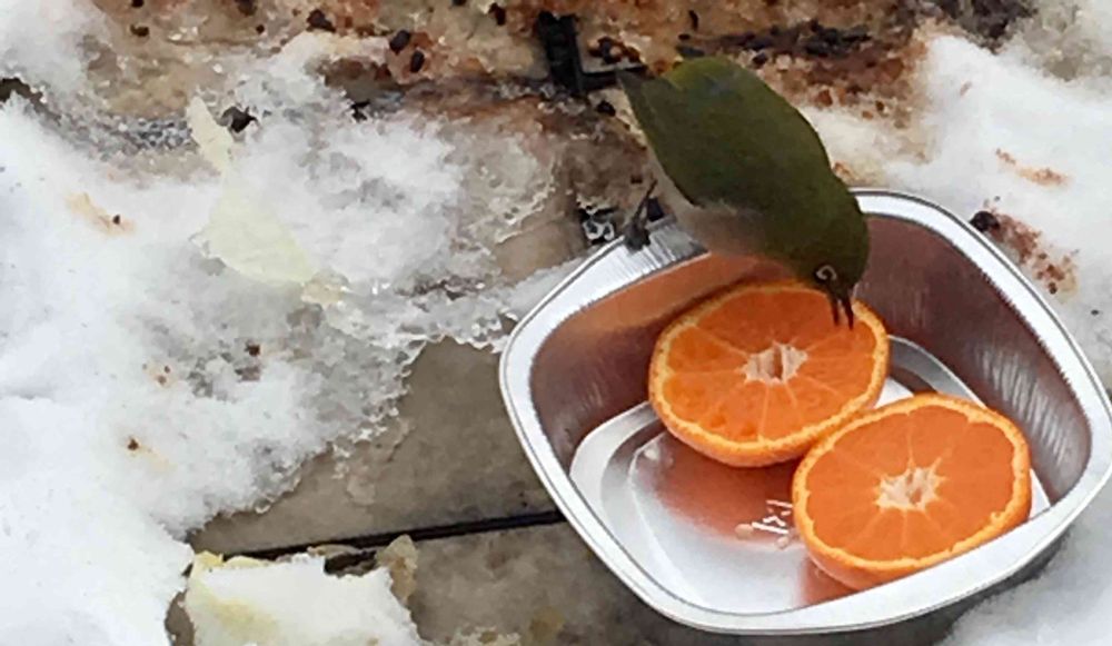 この冬も🐥ことりさんは🍊をキレイに食べています。たまらん🤤可愛さです